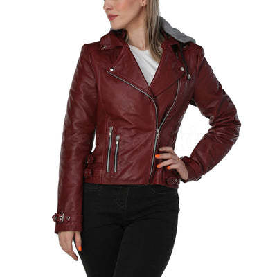 If you are confused as to how to buy one such leather jacket, we come saving your day. The Manufacturers, have manufactured just the right deal sealer for you, our Women Burgundy Leather Jacket, with Gray Hood. Now always look like a regal highness you are and leave unforgettable impressions with this delectable piece.