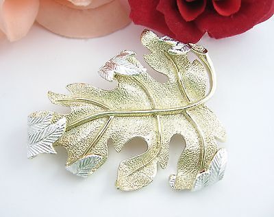 Sarah Coventry WINDFALL Oak Leaf Brooch Vintage PIN Silvertone Goldtone 2 1/2"