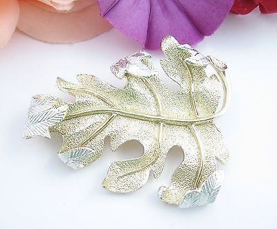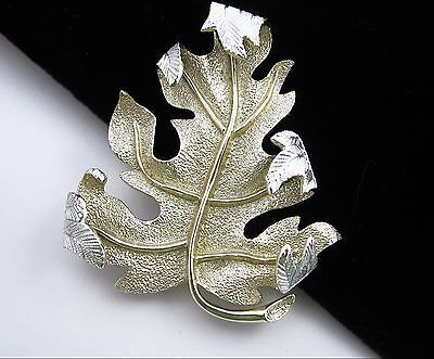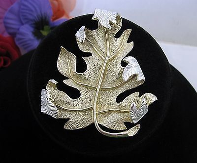 SARAH COVENTRY Oak Leaf WINDFALL BROOCH Vintage PIN Silvertone Goldtone 2 1/2"