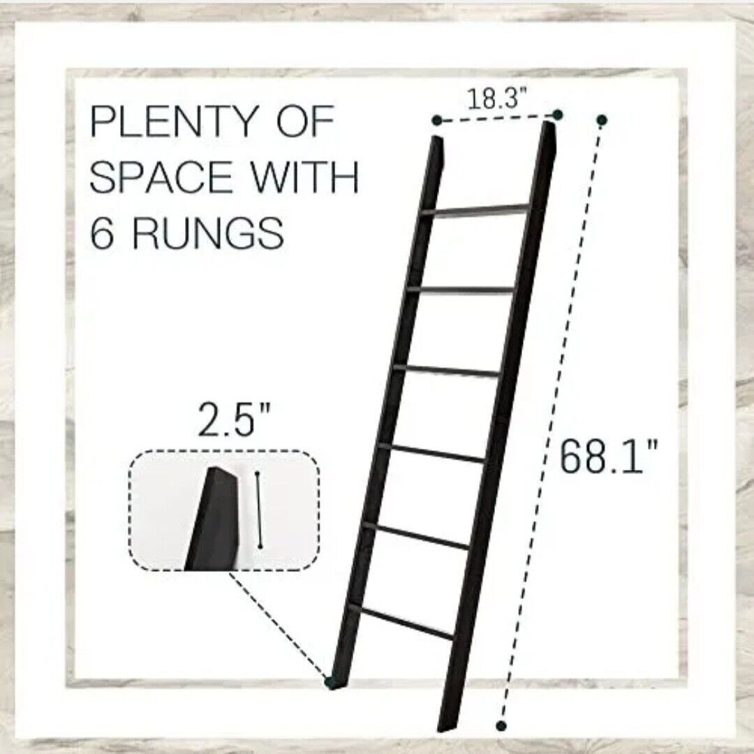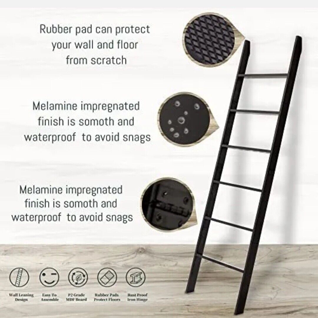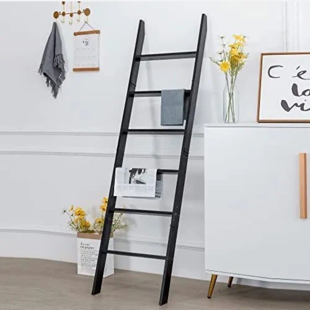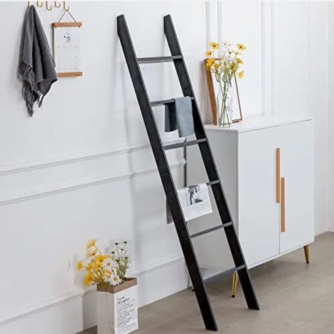 YONCFURNI 6 Tiers Black Blanket Ladder 68” Quilt Stand Towel Rack Wall Leanin...