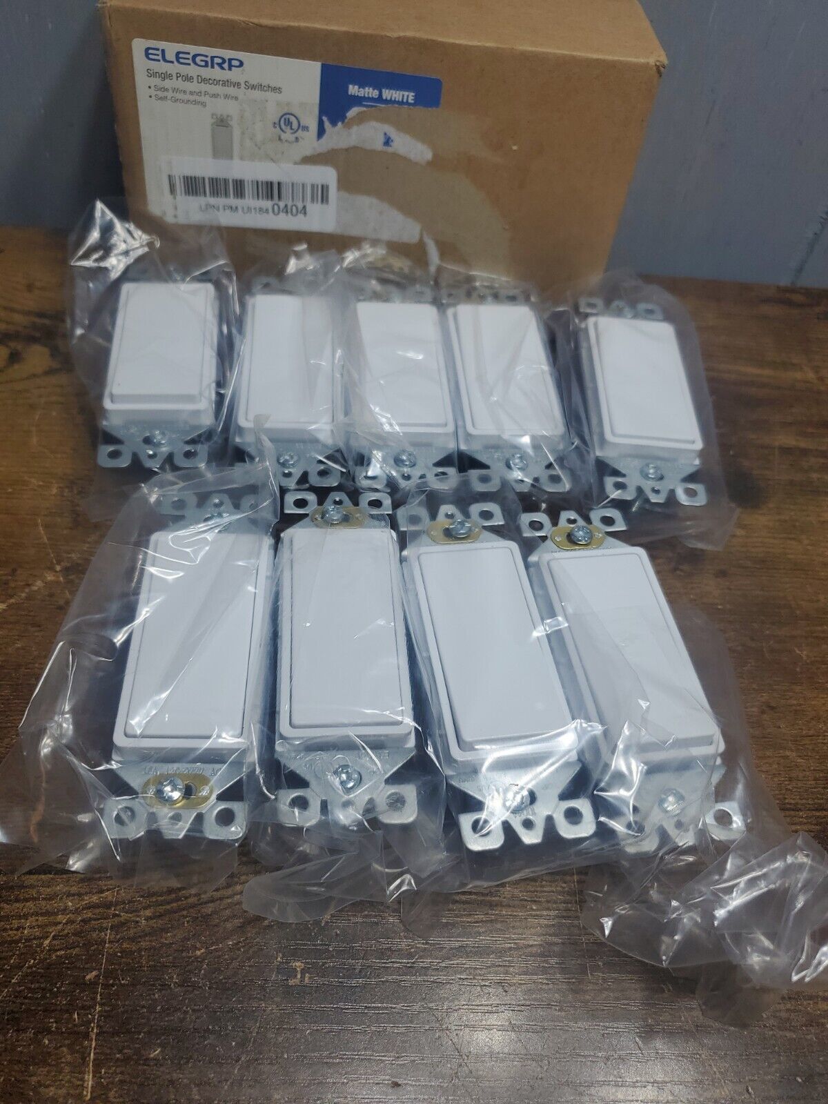 9 PACK elegrp single pole Light switch decorator 15A 120v/277v wall white.