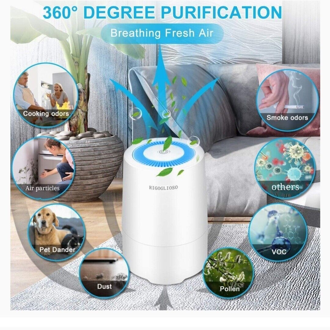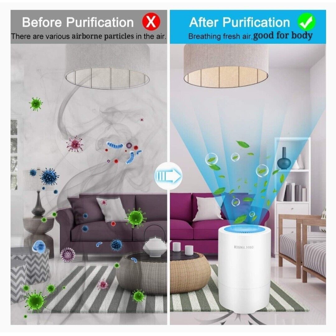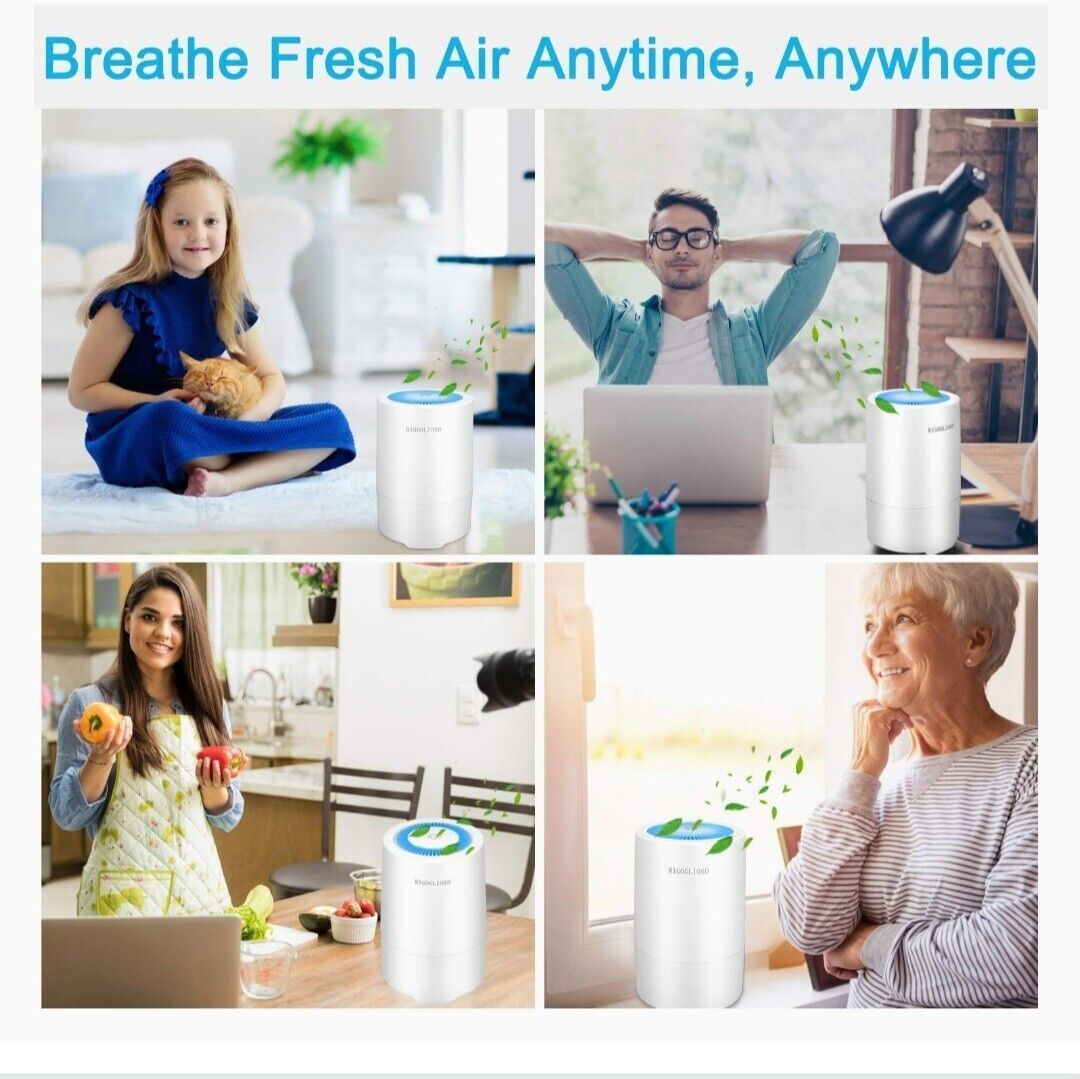 RIGOGLIOSO HEPA Air Purifier for Bedroom Office,Purify 99.97% Pollen,Smoke,Dust,Odor,Pet Dander,100% Ozone Free,USB Air Cleaner with Night Light.