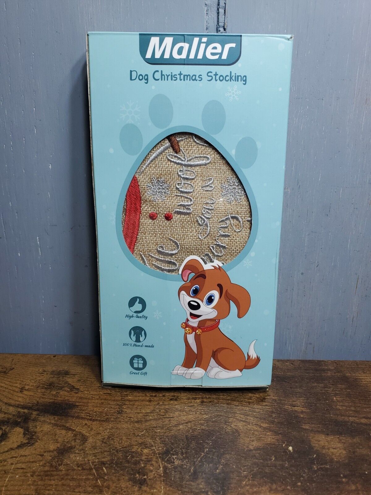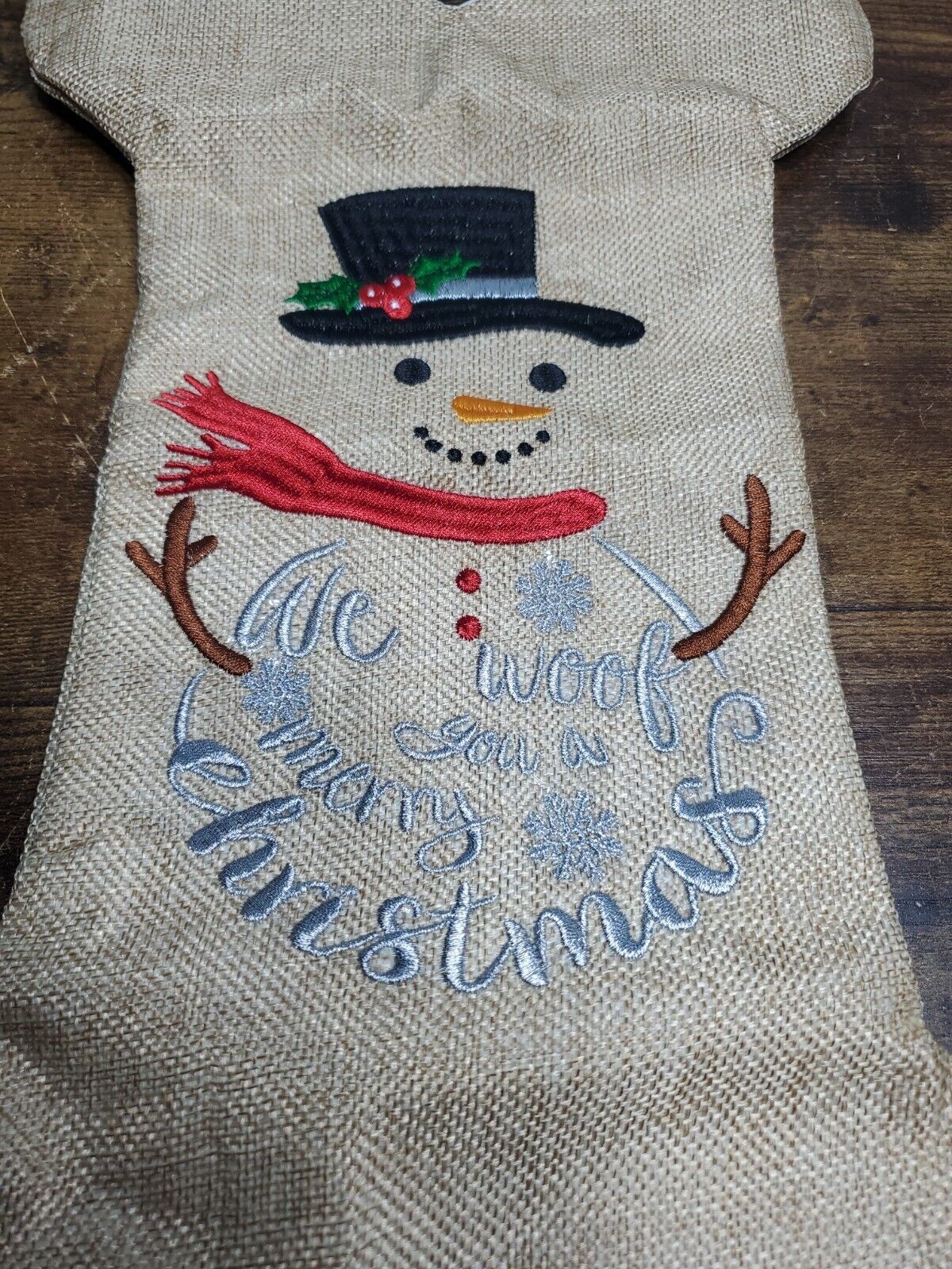 Malier New Burlap Dog Bone Stocking Snowman We woof you a Merry Christmas