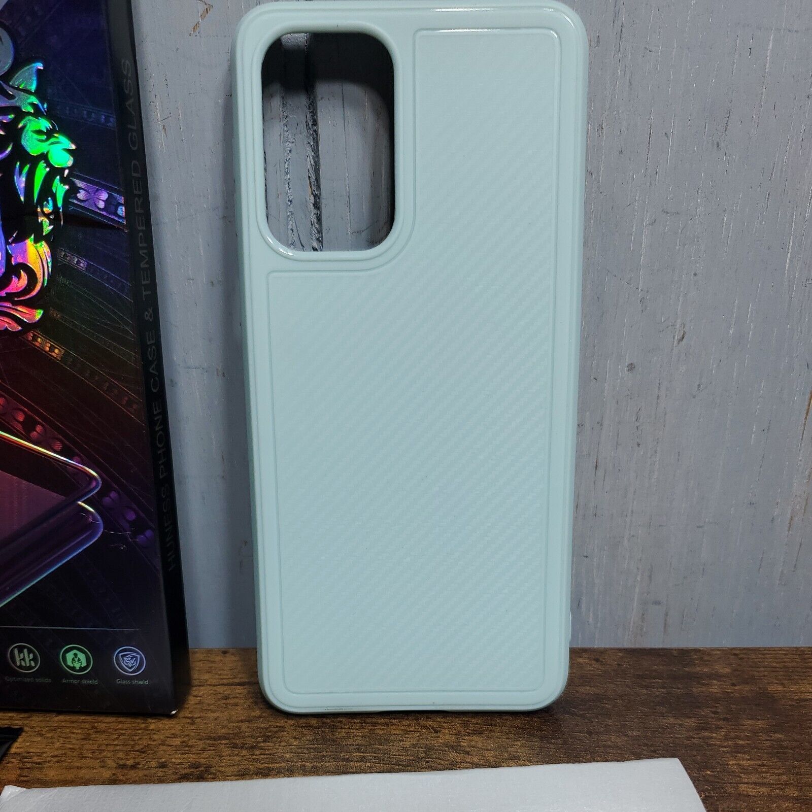 Huness for Samsung Galaxy A33 5G Case + Tempered Glass Screen Protector Durable Carbon Fiber Anti-Scratch Anti-Fingerprint Airbag Shock Absorption Protective Case mint green