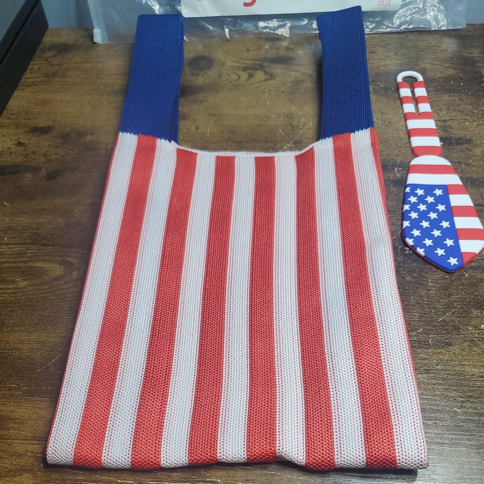 Patriotic Cute Small Handbag Tote for Women Aesthetics Crochet Tote Bag.