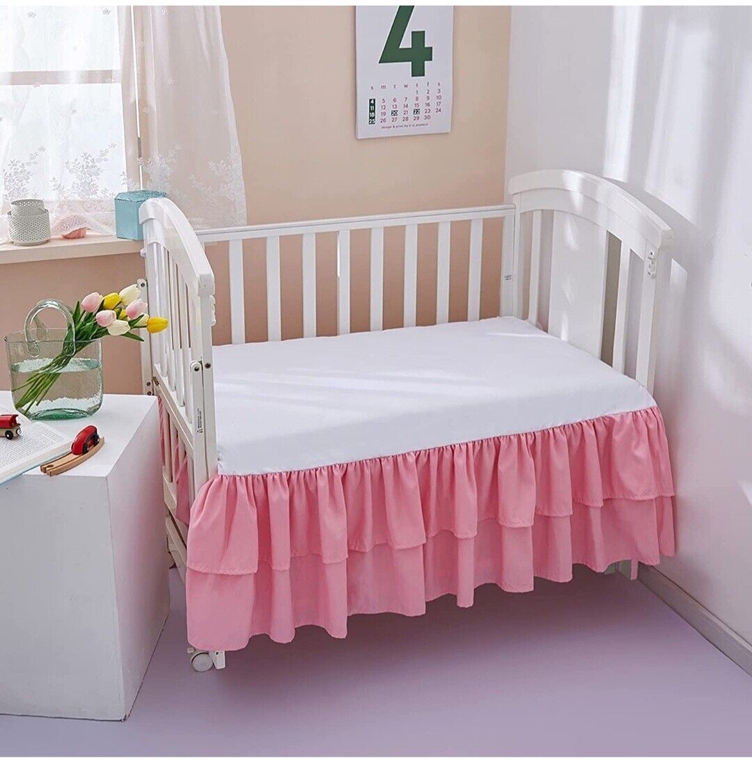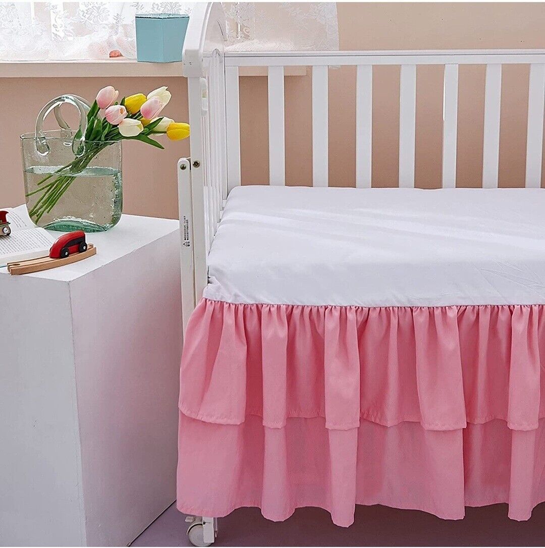 JSD Pink Crib Bed Skirt Dust Ruffle Double Layer Brushed Microfiber Nursery Bed