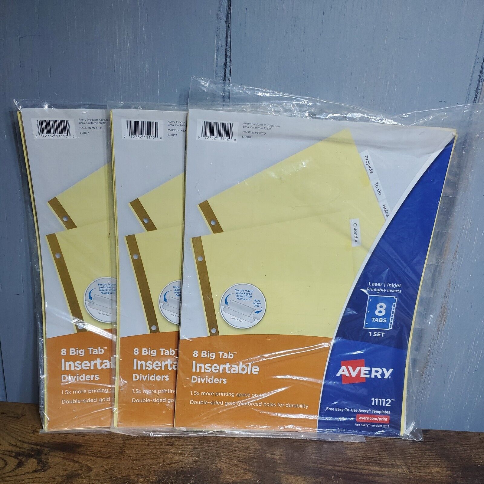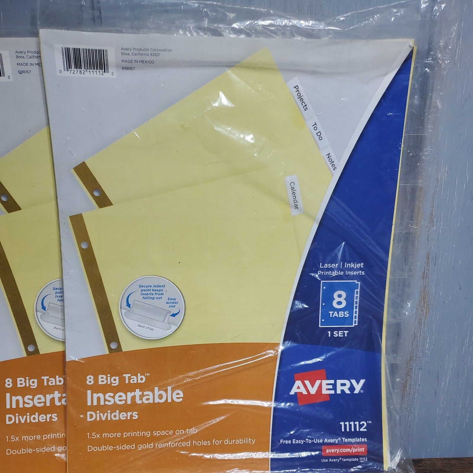 Avery Insertable Big Tab Dividers 8-Tab Laser/Inkjet Printable Inserts Lot Of 24