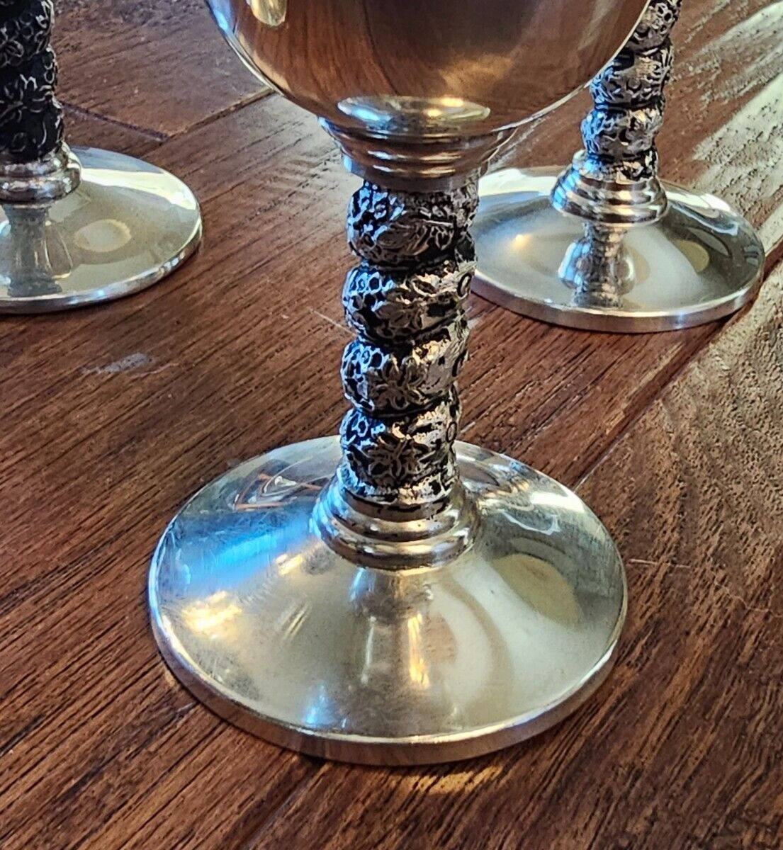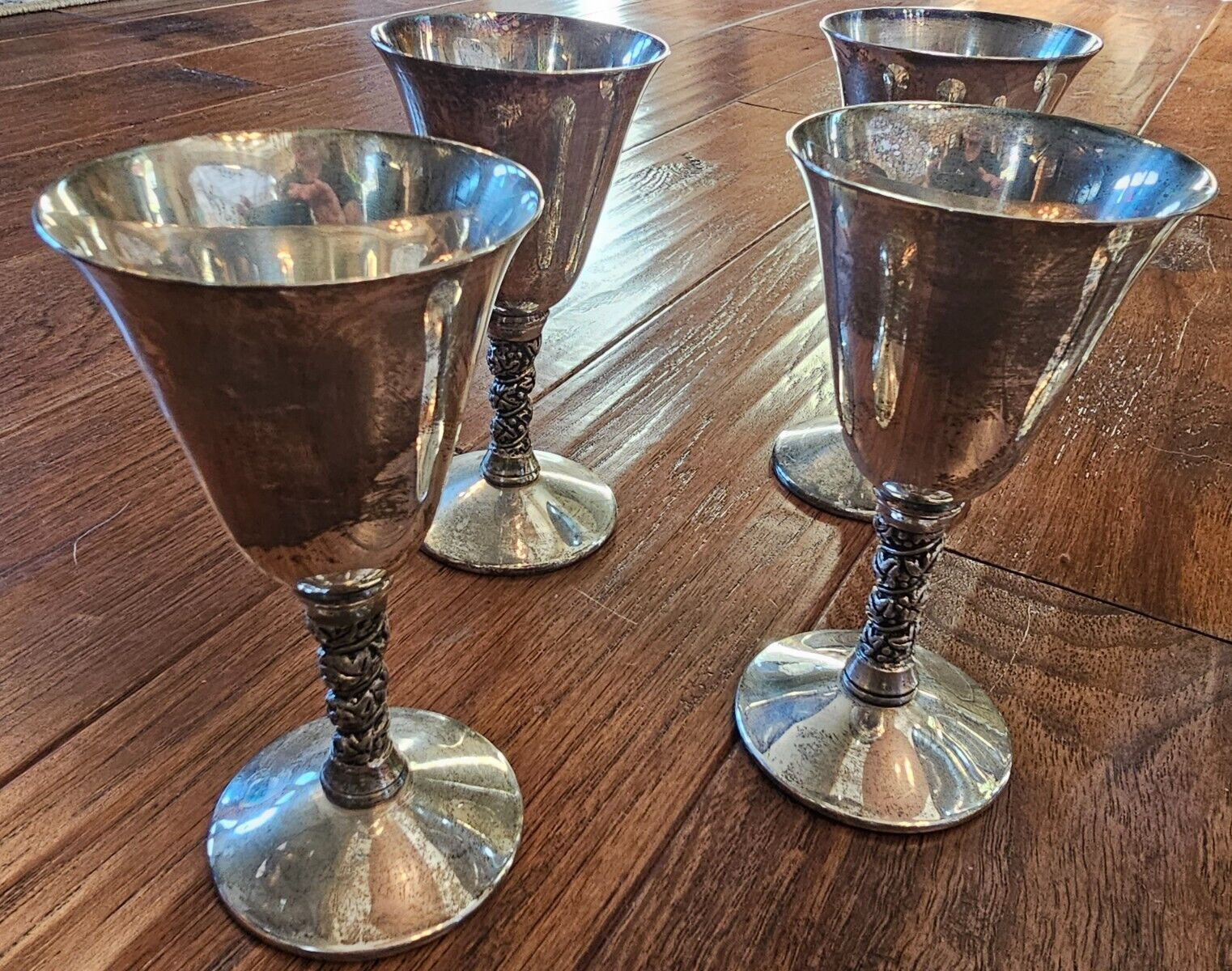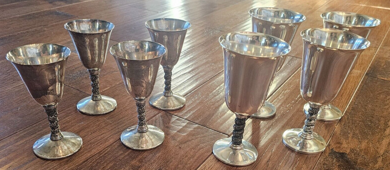 8 Vintage Silver Plated Spiral Stem Goblets Made In Spain Castle Mid-evil 2 size