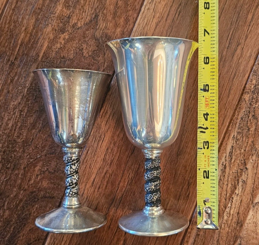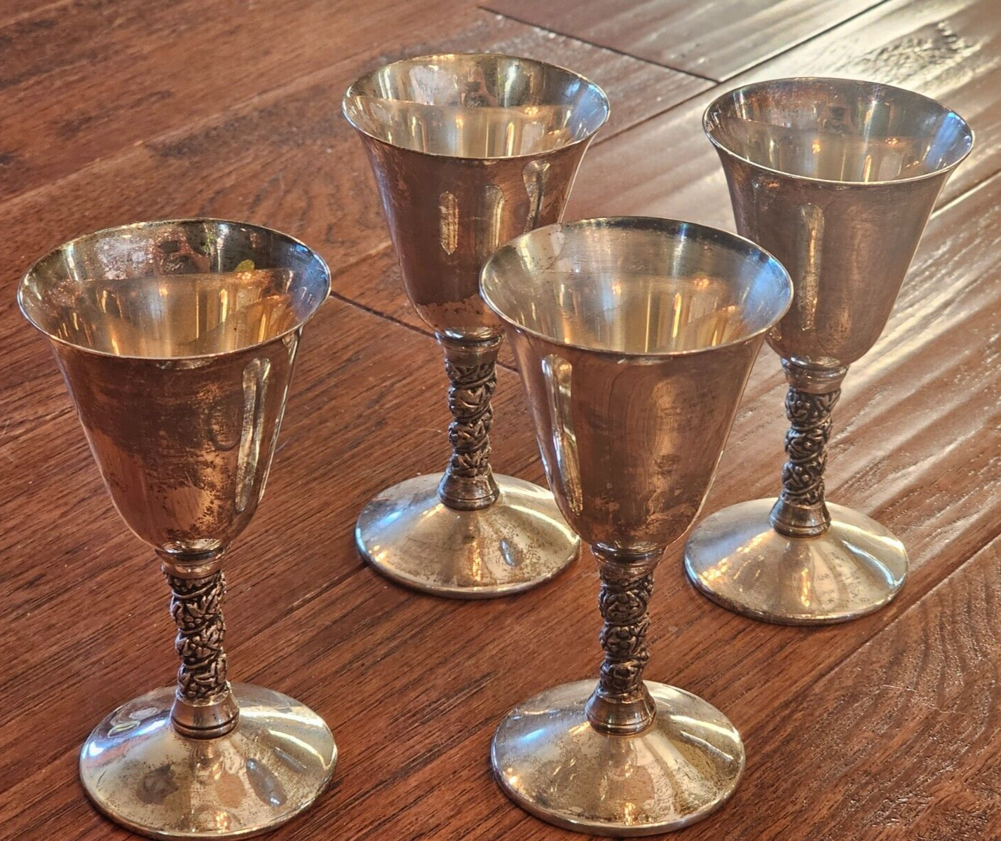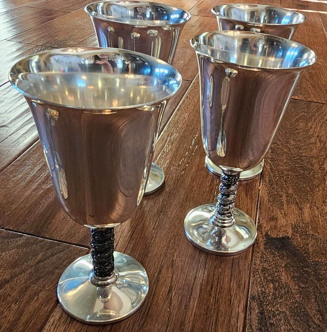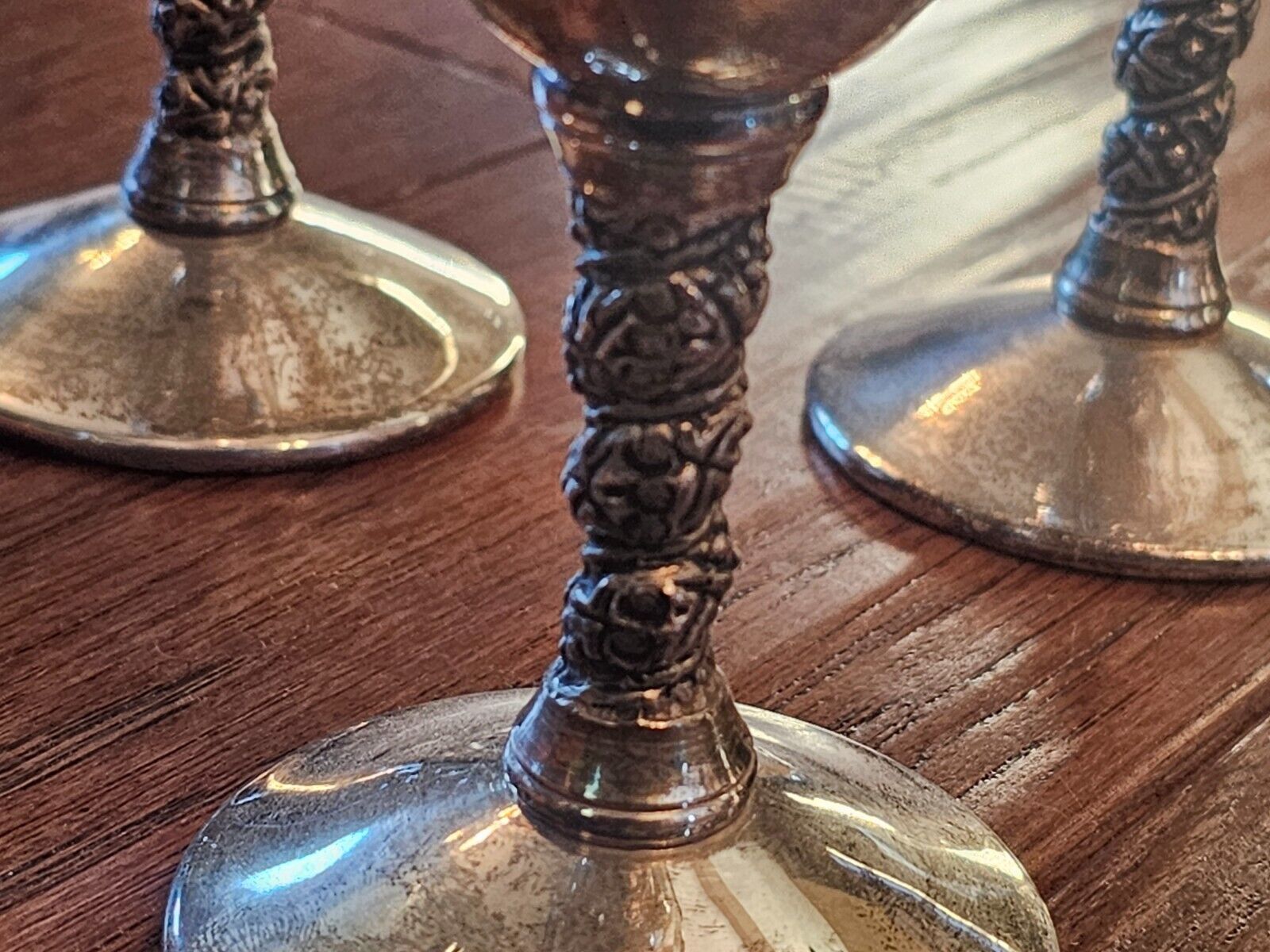 8 Vintage Silver Plated Spiral Stem Goblets Made In Spain Castle Mid-evil 2 size