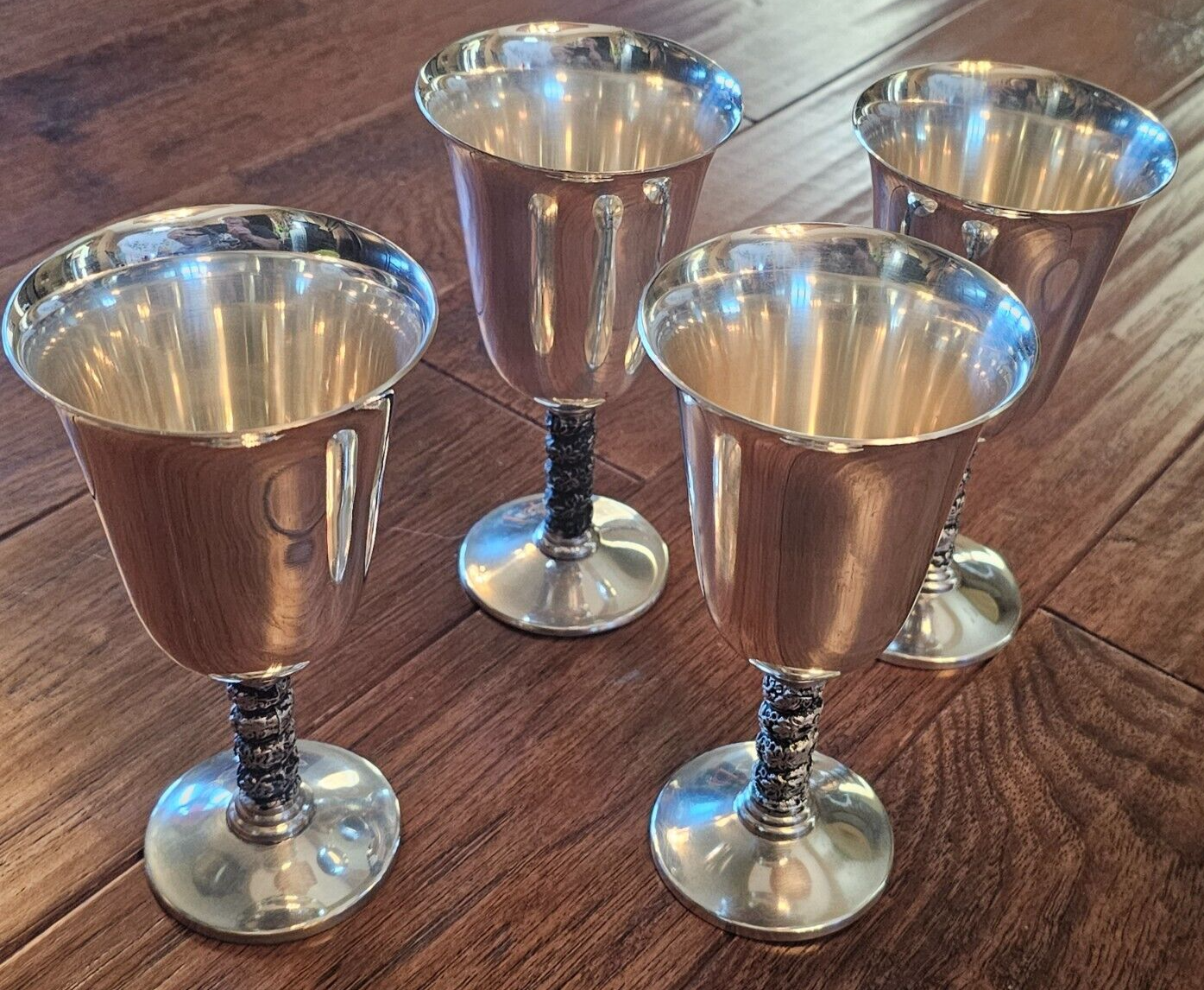8 Vintage Silver Plated Spiral Stem Goblets Made In Spain Castle Mid-evil 2 size E2