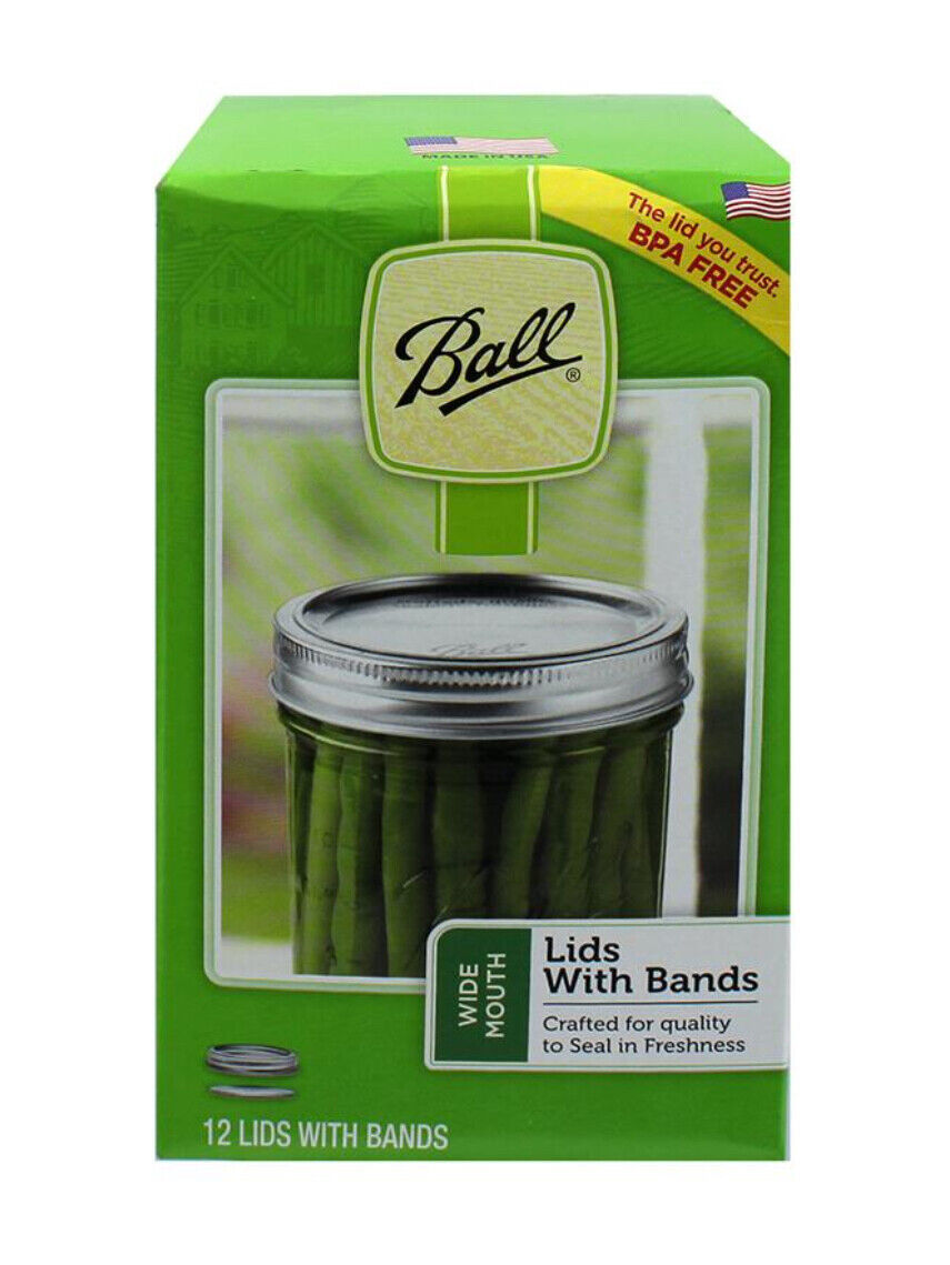 Ball Wide Mouth Lids With Bands for Mason Jar Canning, Box of 12 Sets of Band and Lid, New
