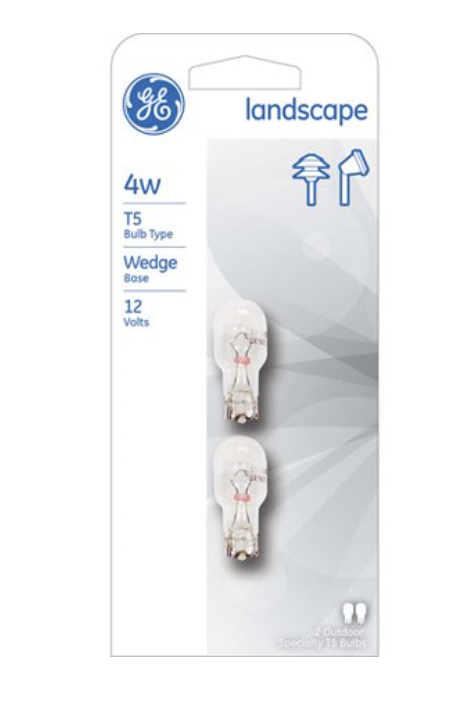 GE Landscape Replacement Bulb, 4W, T5 Bulb Type, Wedge Base, 12 Volts, Pack of 2
