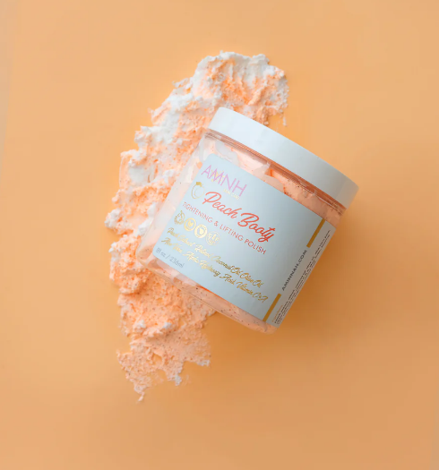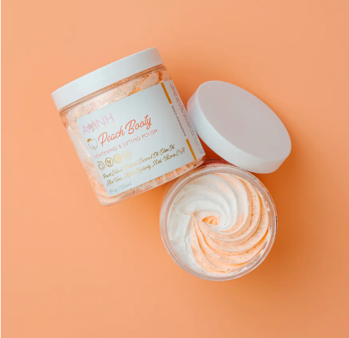 Boosts collagen and vitamin C: Aminnah Peach Booty Polish is enriched with collagen-boosting ingredients and vitamin C, which promote elasticity and improve the overall texture of your skin.