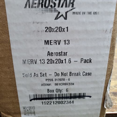 Aerostar 20x20x1 MERV 13 Furnace Air Filter, 6 Pack