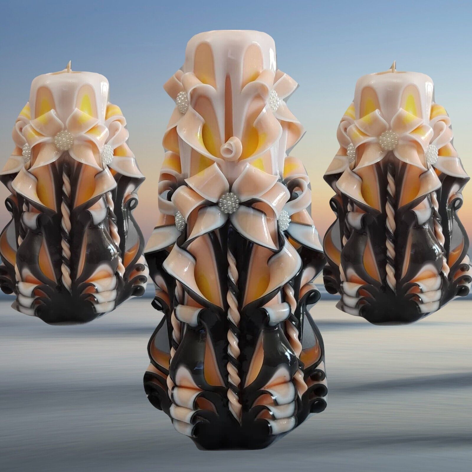 Carved Candles Decor Handmade Gift Colourful Art Design Home Handcrafted Set