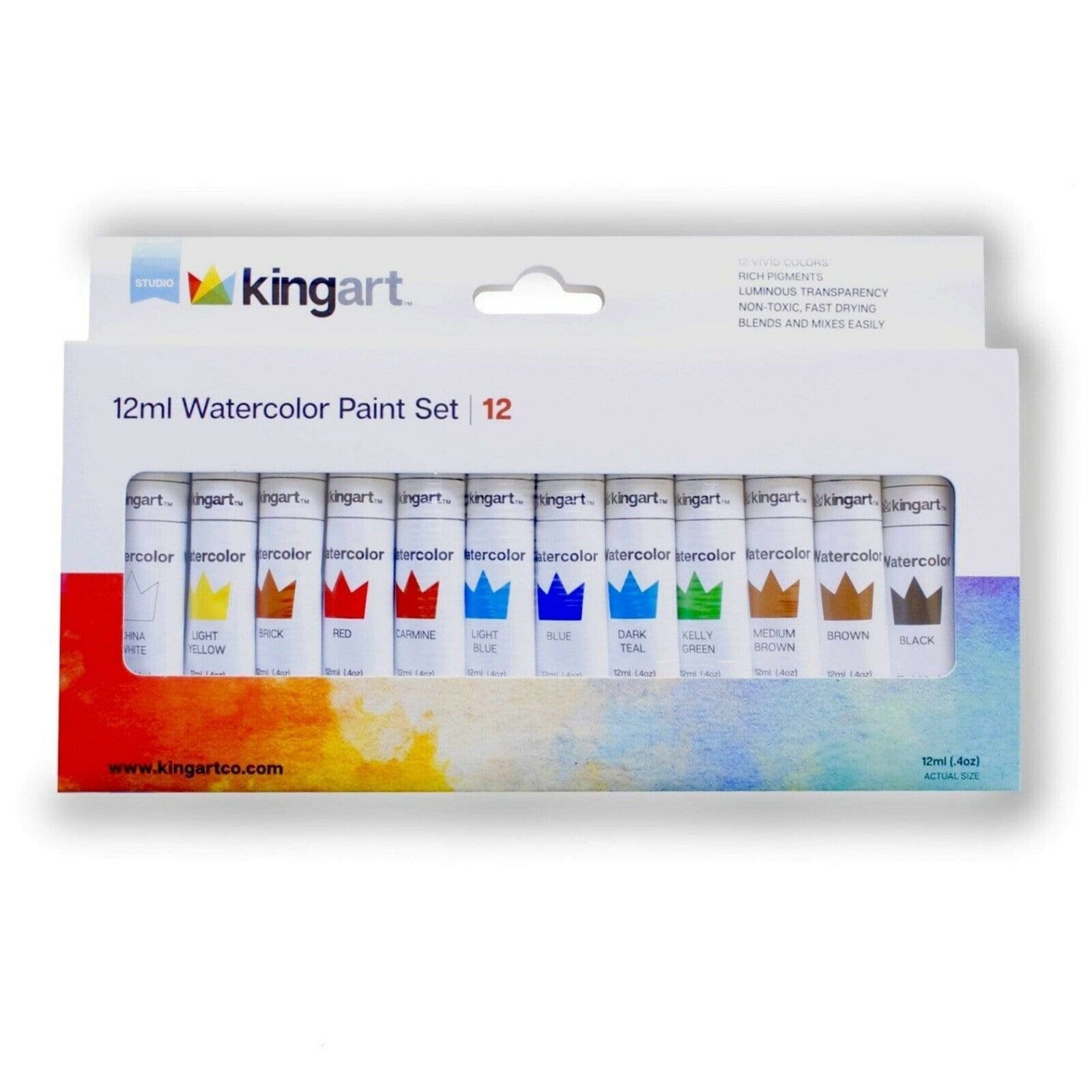 KINGART? Studio Watercolor Paint, 12ml (.4oz), Set of 12 Colors