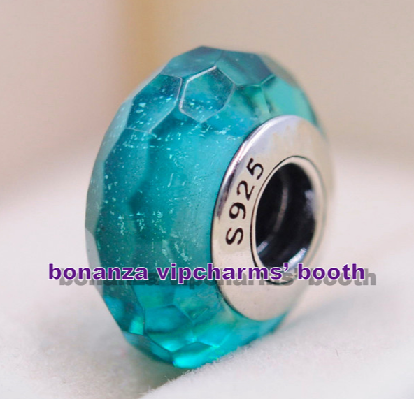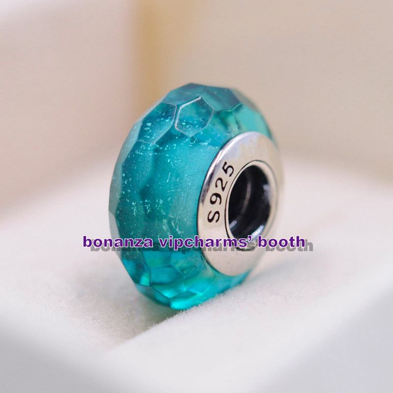 925 Sterling Silver Handmade Glass Teal Shimmer Faceted Murano Glass Charm Bead