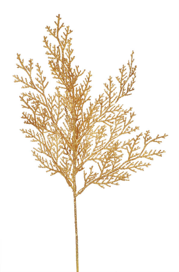Christmas Floral Liven Your Holiday Decor With This Gold Christmas Pick. This Cypress Piece Measures 8 Inches And Is Covered In Glitter To Give Any Arrangement A Touch Of Decadence. 1 Pack Of 1 Piece