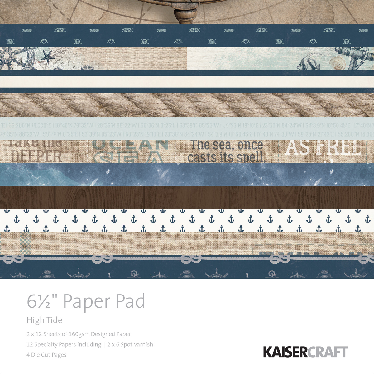 High Tide Paper Pad Perfect for scrapbooking paper crafting and all kinds of projects This package contains twenty four 6 1 2x6 1 2 inch single sided designer papers in twelve different designs two of each design twelve 6 1 2x6 1 2 inch single sided specialty sheets in six different designs two of each and four 6 1 2x6 1 2 inch single sided die cut pages Photo friendly Imported