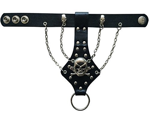 Halloween Wholesalers Wrist Band with Skull Crossbones Chains Ring