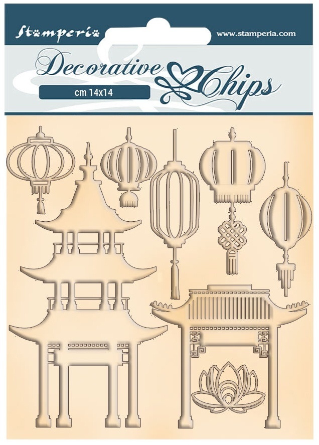 Stamperia Decorative Chips 5.5"X5.5"-Pagoda Lamps, Sir Vagabond In Japan