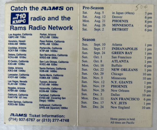 Rams Football NFL 1989 Schedule Mini and 12 similar items
