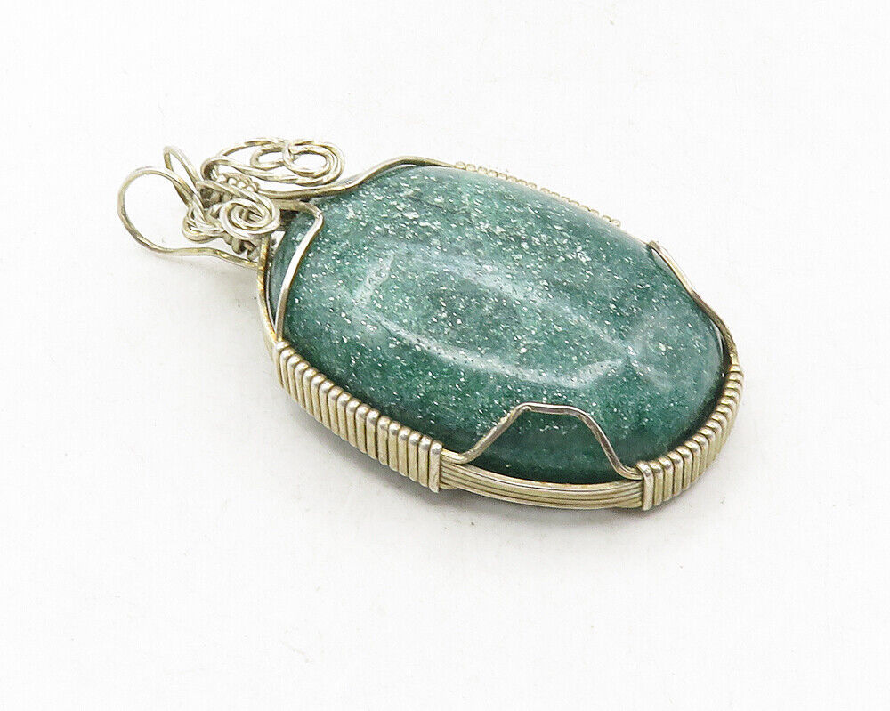 925 Sterling Silver - Vintage Aventurine Swirl Butterfly Detail Pendant - PT7718