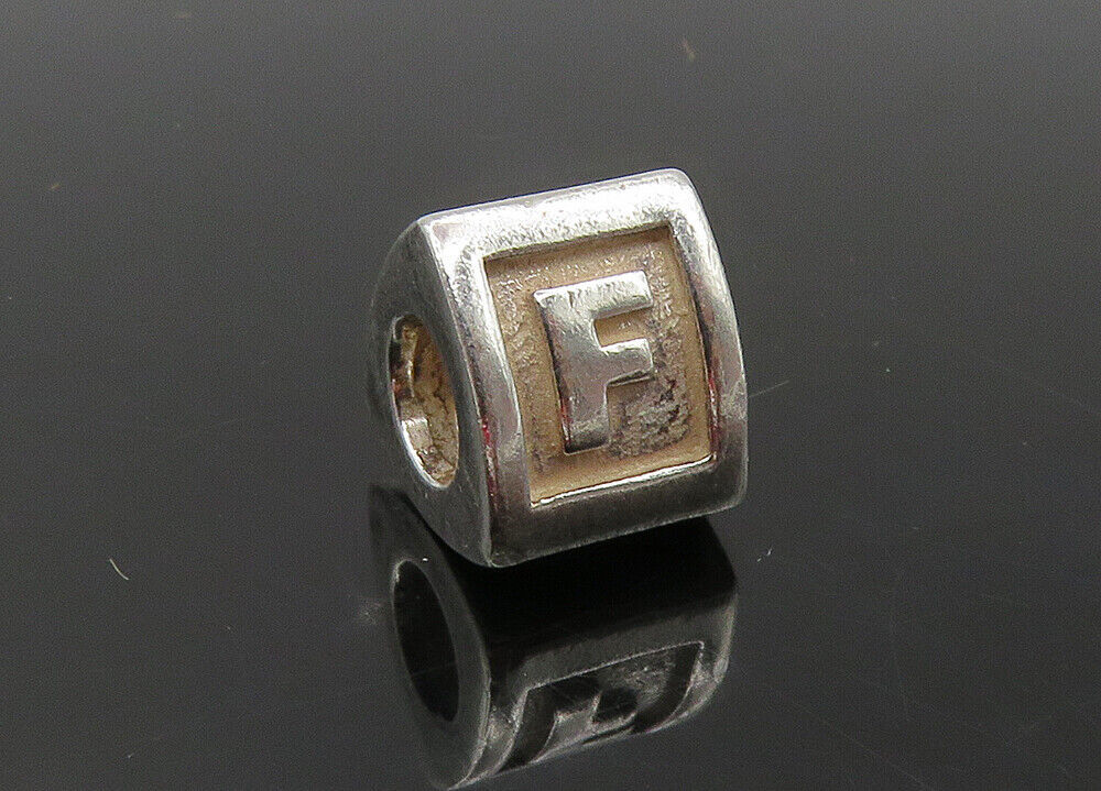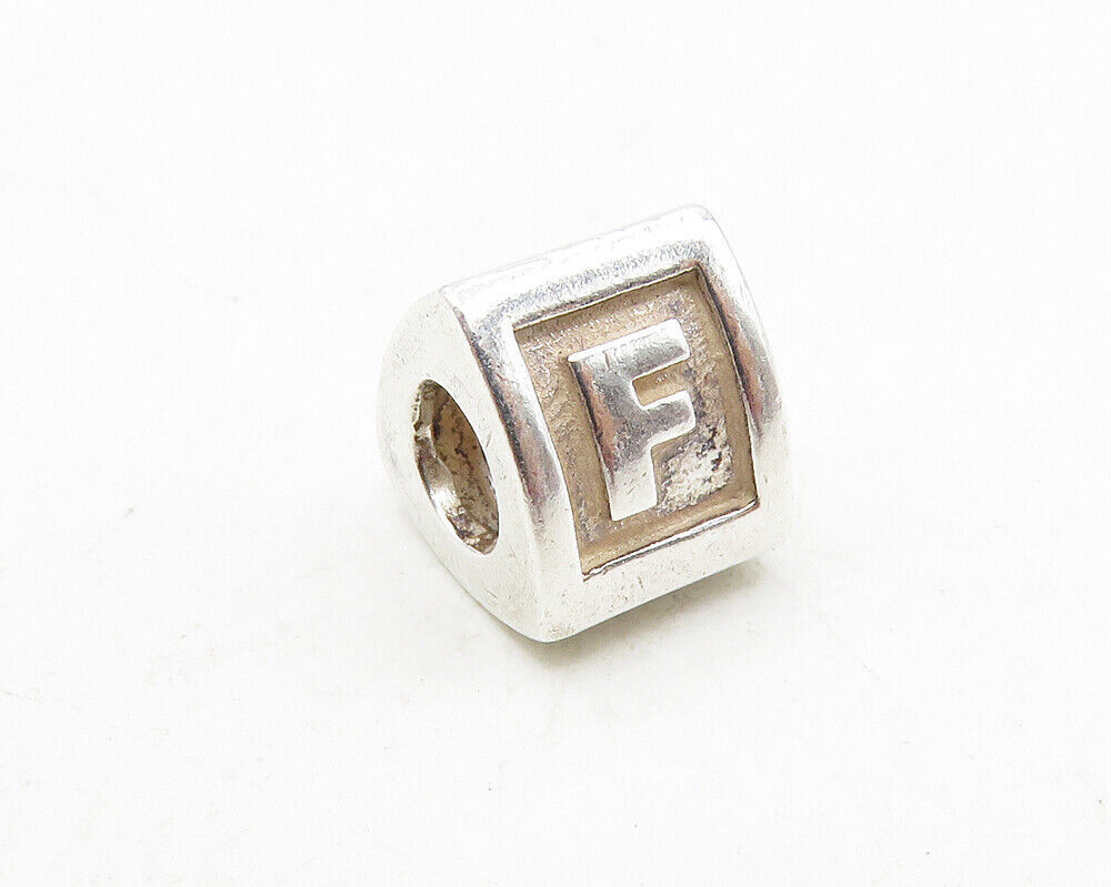 PANDORA 925 Silver - Vintage Petite Shiny F Initial Bead Charm Pendant - PT7478