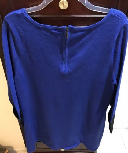 Women's New Directions Crew Neck 2/3 Sleeve Blouse Sz Lg Faux Leather Delphinium