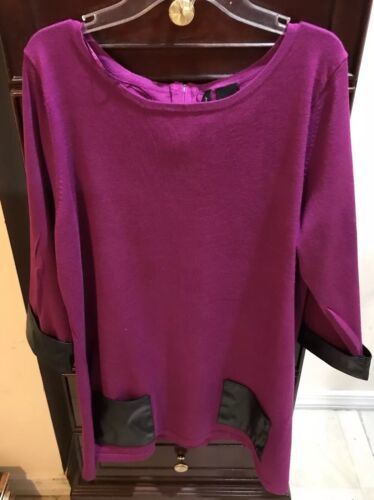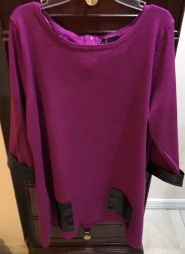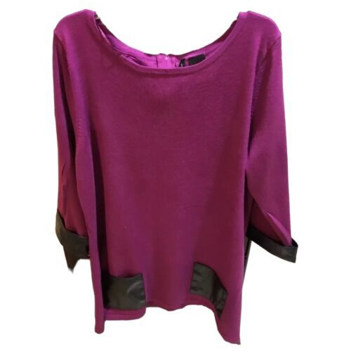 Women's New Directions Red Crew Neck 2/3 Short Sleeve Blouse Faux LeatheSz Small