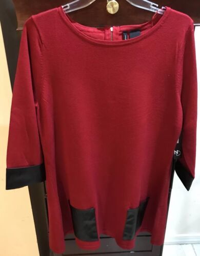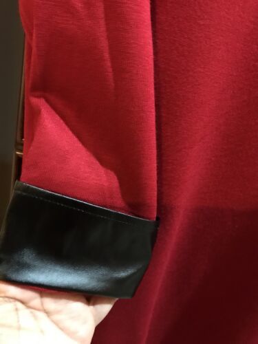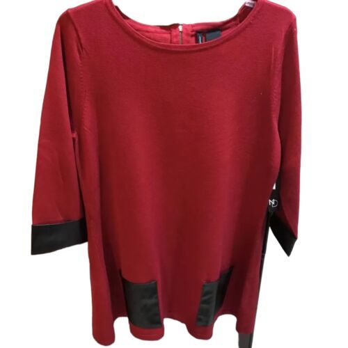 Women's New Directions Red Crew Neck 2/3 Short Sleeve Blouse Sz Lg Faux Leather