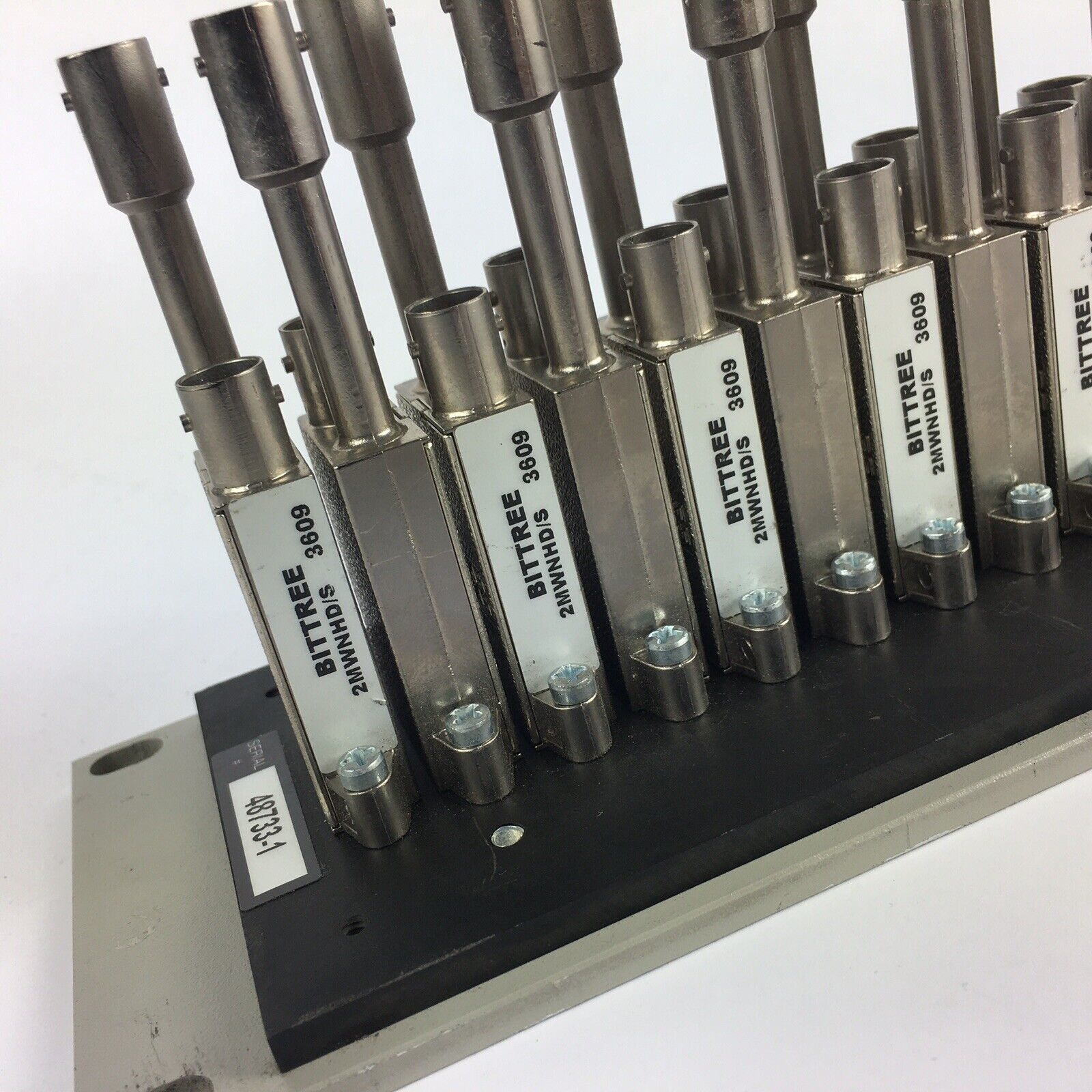 ---in great condition ---pulled from a working environment Hollywood Studio ---professionally packaged for safe free shipping with UPS ground Bittree reg; Mini-WECO (Midsize) Video Patchbay in 2 RU Height with 2x32 Jack Configuration Mini-WECO Video Jack Properties: bull; High-bandwidth performance for SD/SDI, HD/SDI, 3 Gb/s and 3D applications bull; SMPTE 259M, 292M and 424M compliant bull; True 75 ohm impedance with low return loss Panel Features: bull; 3/16" (0.187 in. / 4.76 mm) machined aluminum with a durable powder-coat finish bull; Rear-mounted jack modules bull; Precision machined phenolic insulator electrically and mechanically separates jacks from the front panel bull; 2 x DS870-10 Designation Strips: - Stainless-steel sliders with white styrene and non-glare Lexan inserts bull; Staggered BNC Rear Interface Options: bull; Mini-WECO video configuration: - Dual body, self-normalling, non-terminating (2MWNHD) - bull; Front Panel Color ndash; Gray scratch resistant powder-coat finish Compliance: bull; RoHS Compliance ndash; See our RoHS compliance statement to learn more
