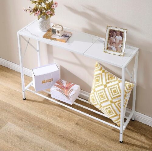 Tajsoon Console Table Industrial entryway Table Narrow Sofa Table with Shelve...