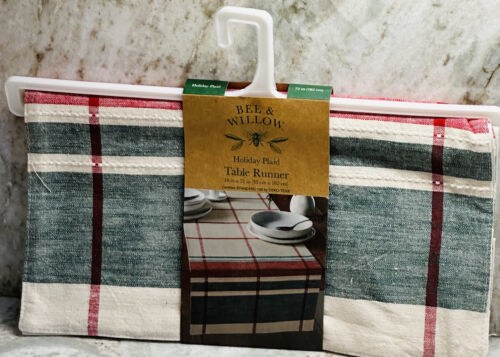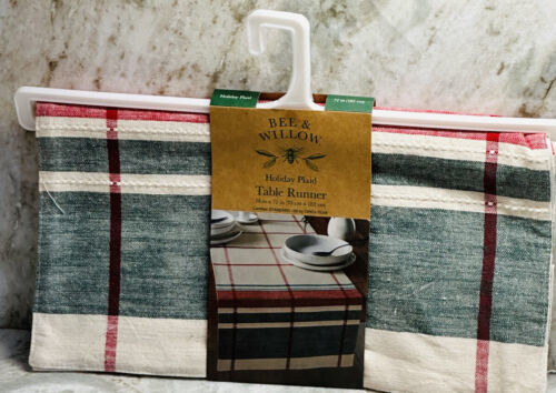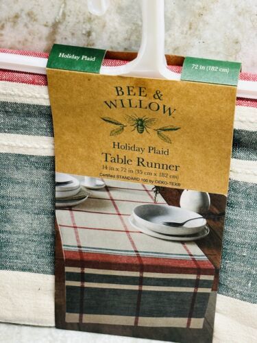 Add a festive touch to your dining table with this beautiful Bee Willow Green Red Christmas Plaid Cotton Table Runner. Measuring 14" x 72", this table runner features a charming bee theme, perfect for the holiday season. Made of high-quality cotton and with a model that is as described, this table runner is both stylish and durable.