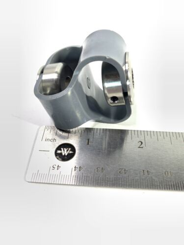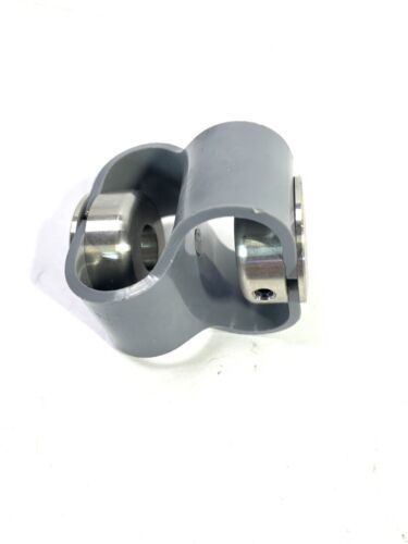 Size 20 double loop flexible coupling, stainless steel collars, 10mm x 10mm bore with set screws.