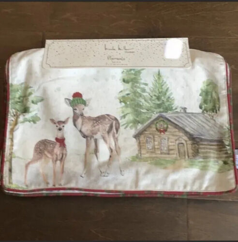 Nicole Miller Placemats set Of 4 Christmas Trees Reindeer Multicolor Cabin