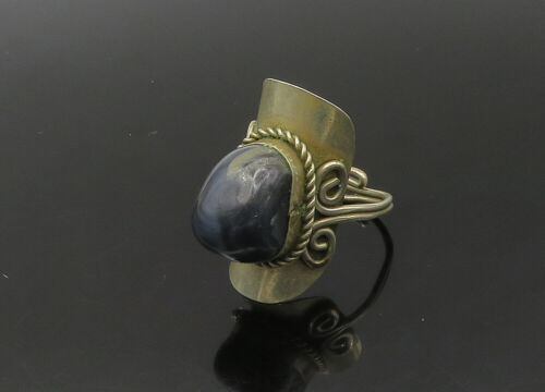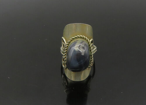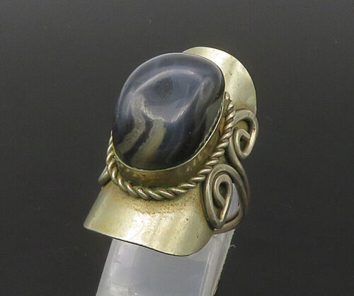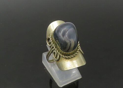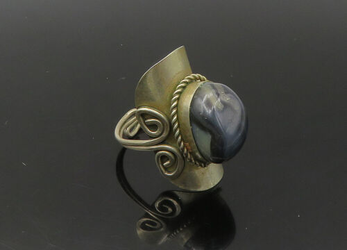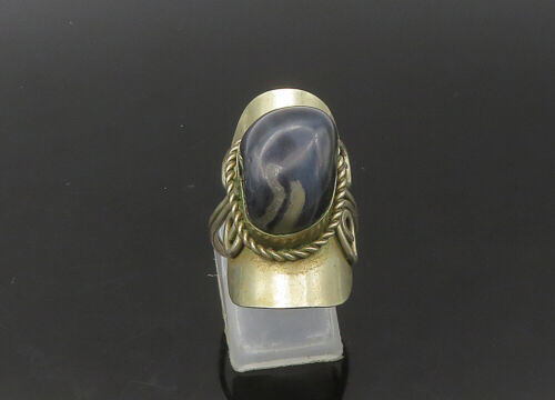 925 Sterling Silver - Vintage Agate Adjustable Cocktail Ring Sz 9 - RG22463