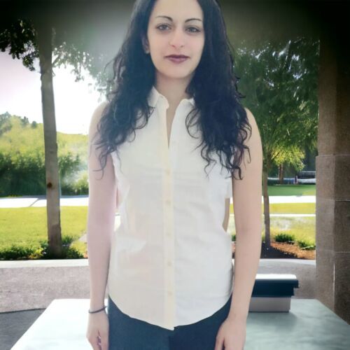 New Womens White Shirt button up sleevless Eddie Bauer Shaped Fit Orig$50 siz XL