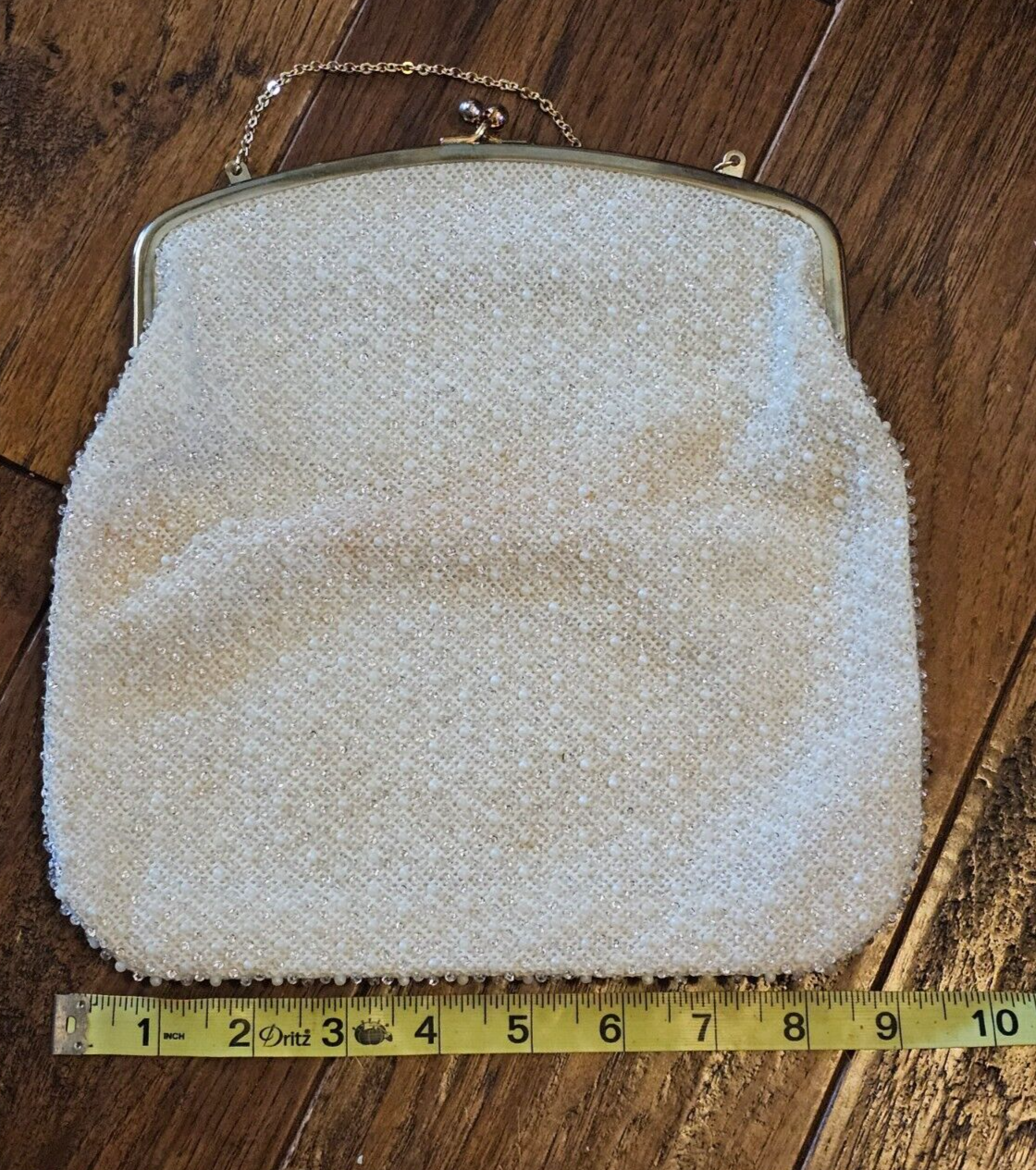 Vintage Corde Bead White Purse Handbag Clutch with Chain Handle Made in U.S.A.