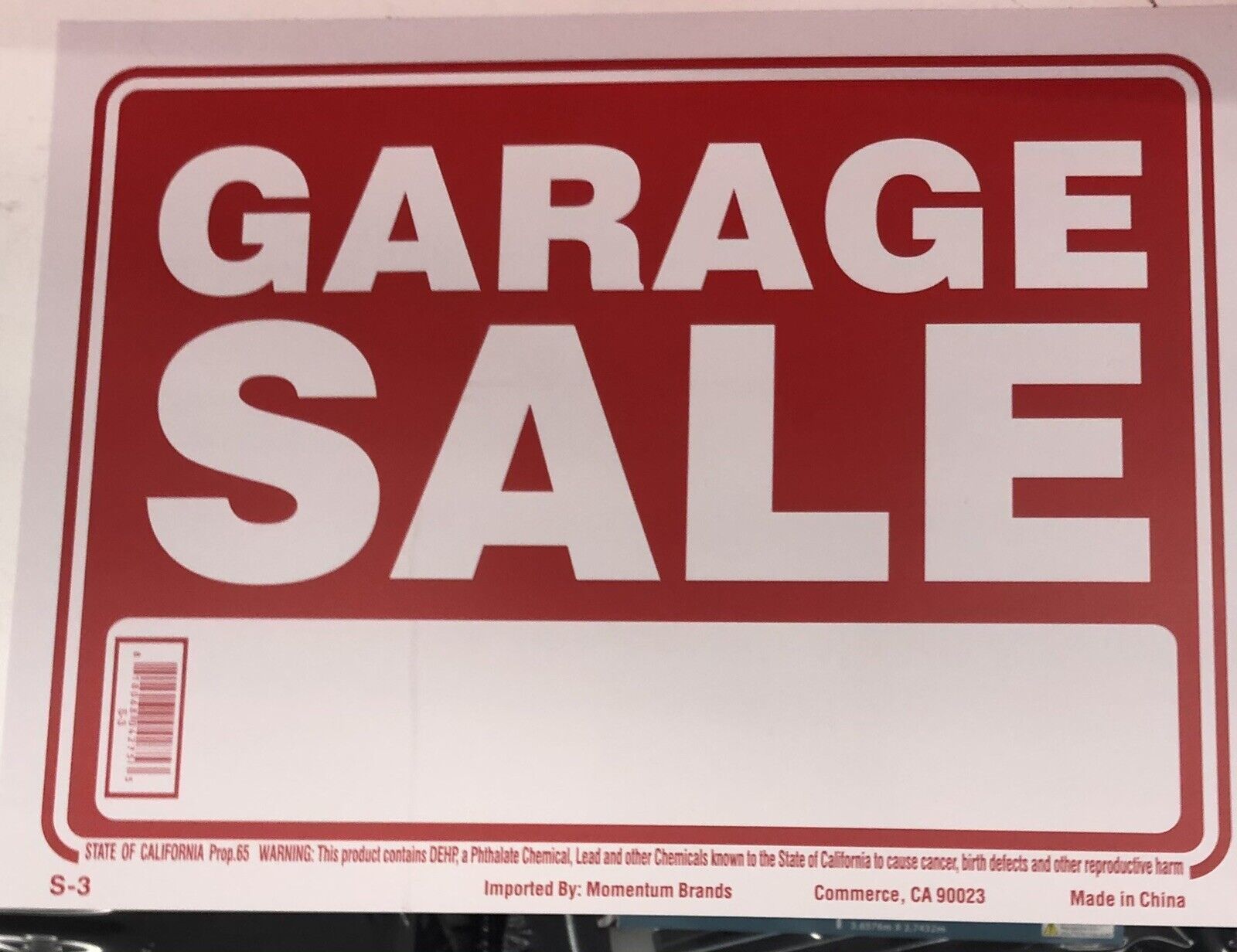 GARAGE SALE SIGN 9 x 12 INCH SIZE DURABLE WEATHERPROOF Yard Estate Moving. Condition is "New". Shipped with USPS First Class.