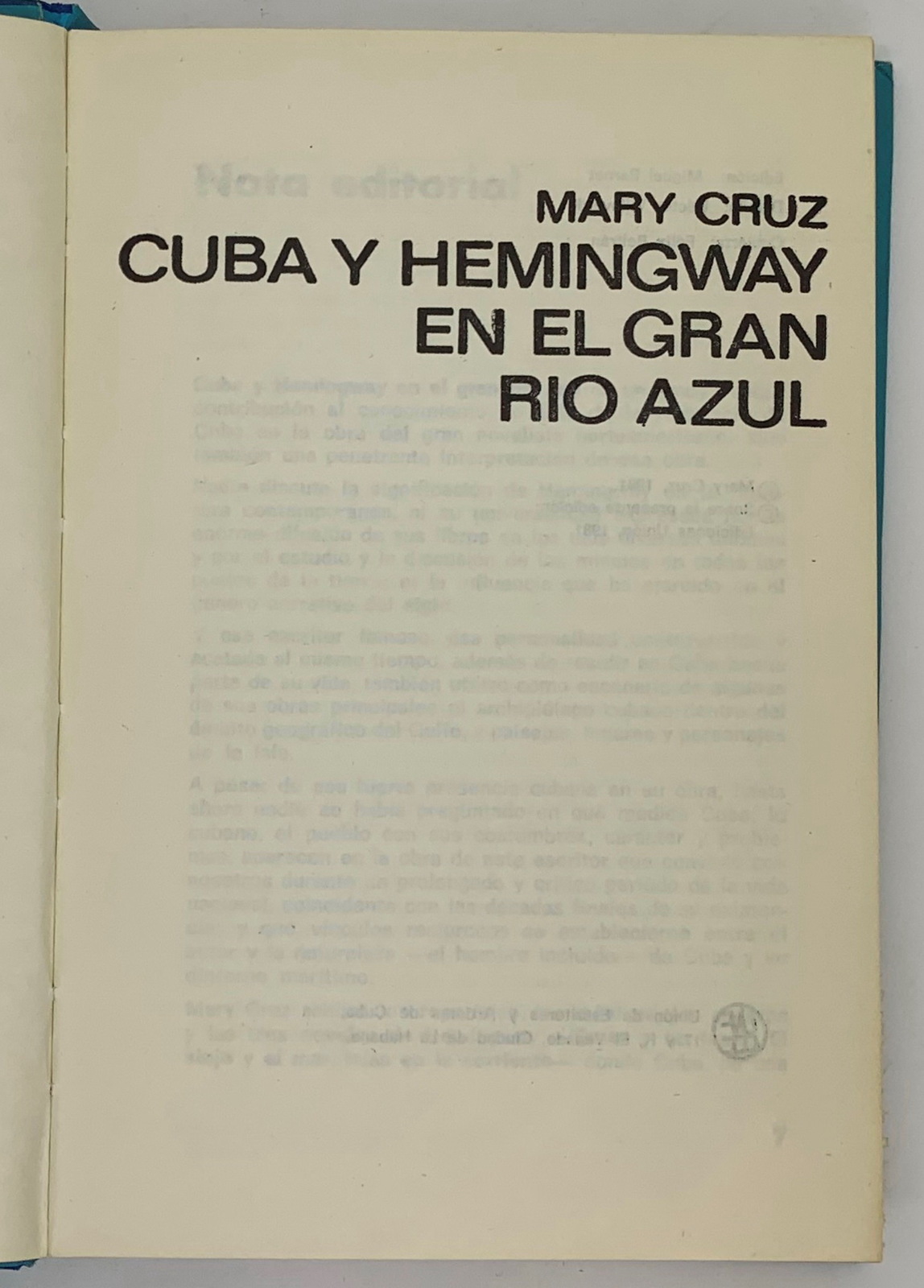 In Spanish. Short description: Mary Cruz. Cuba y Hemingway en el Gran Rio Azul, Havana, 1981. Signed. Please feel free to contact us for a detailed description of the copies available. SKUZLO000594