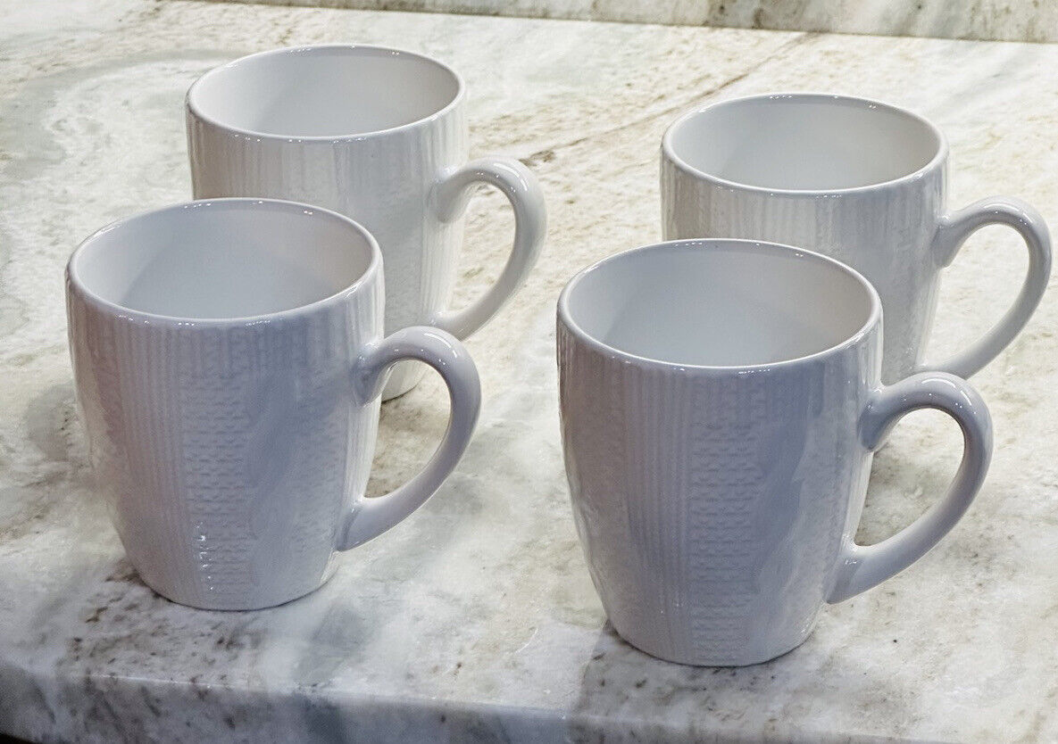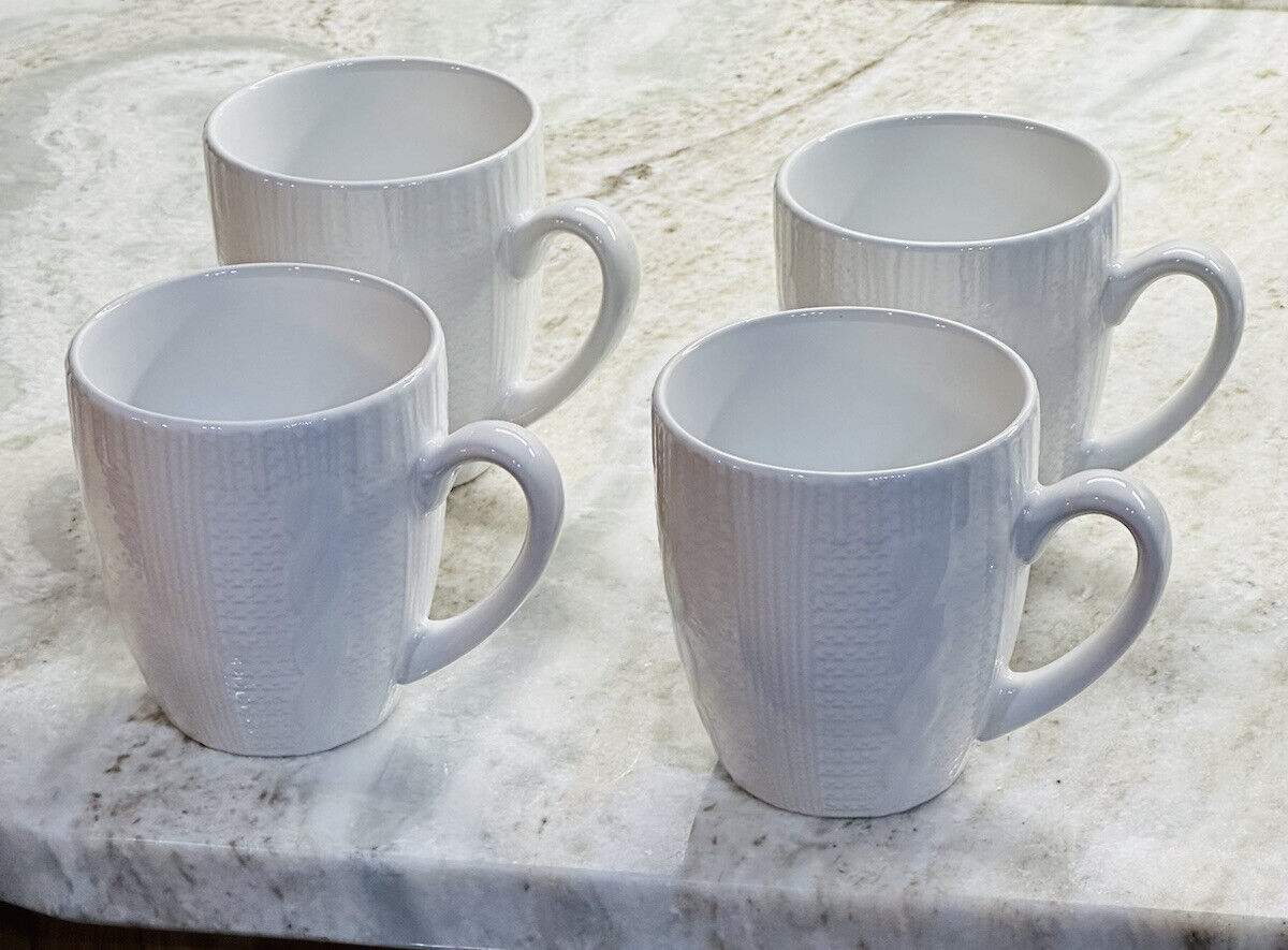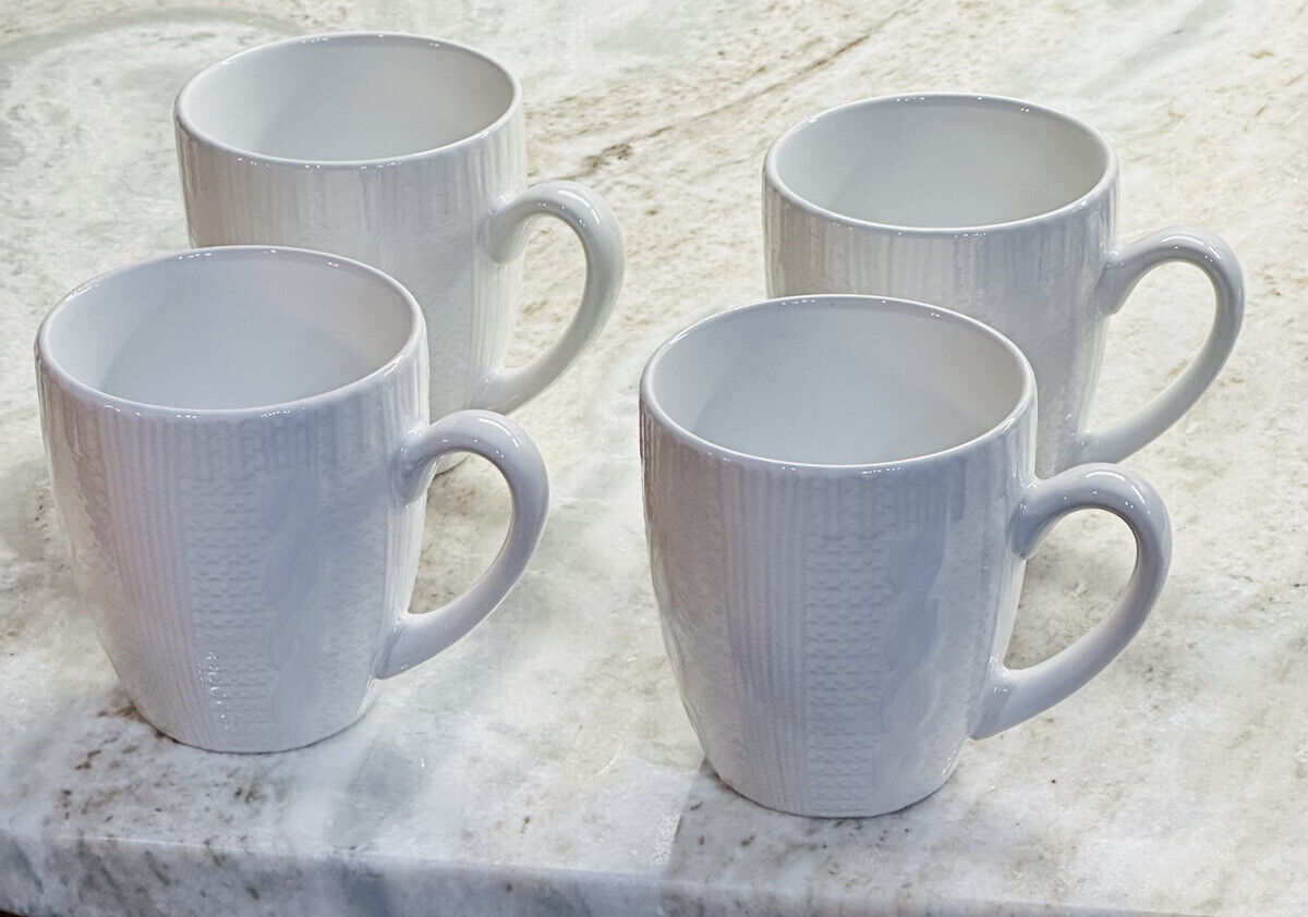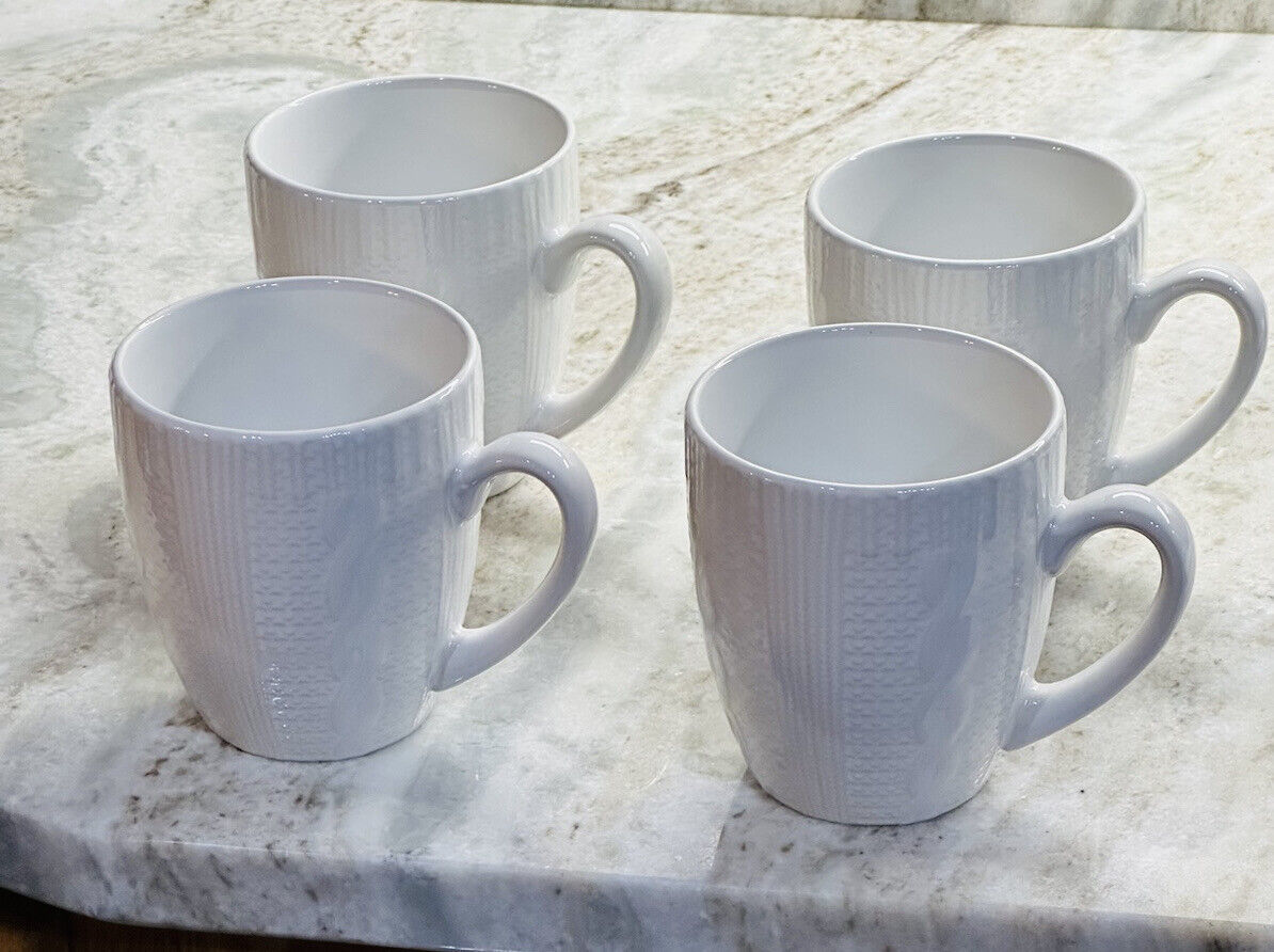 Textured Christmas Oversized White Embossed Sweater Coffee Set Of 4 Cups. 14 Oz