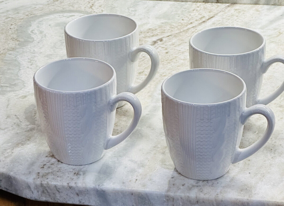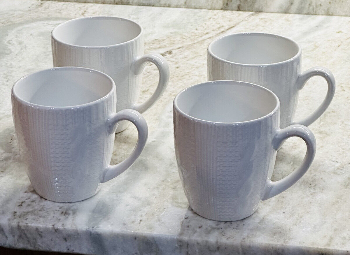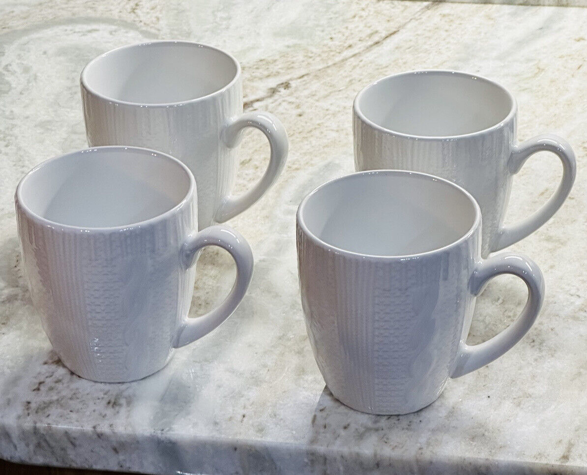 Textured Christmas Oversized White Embossed Sweater Coffee Set Of 4 Cups. 14 Oz