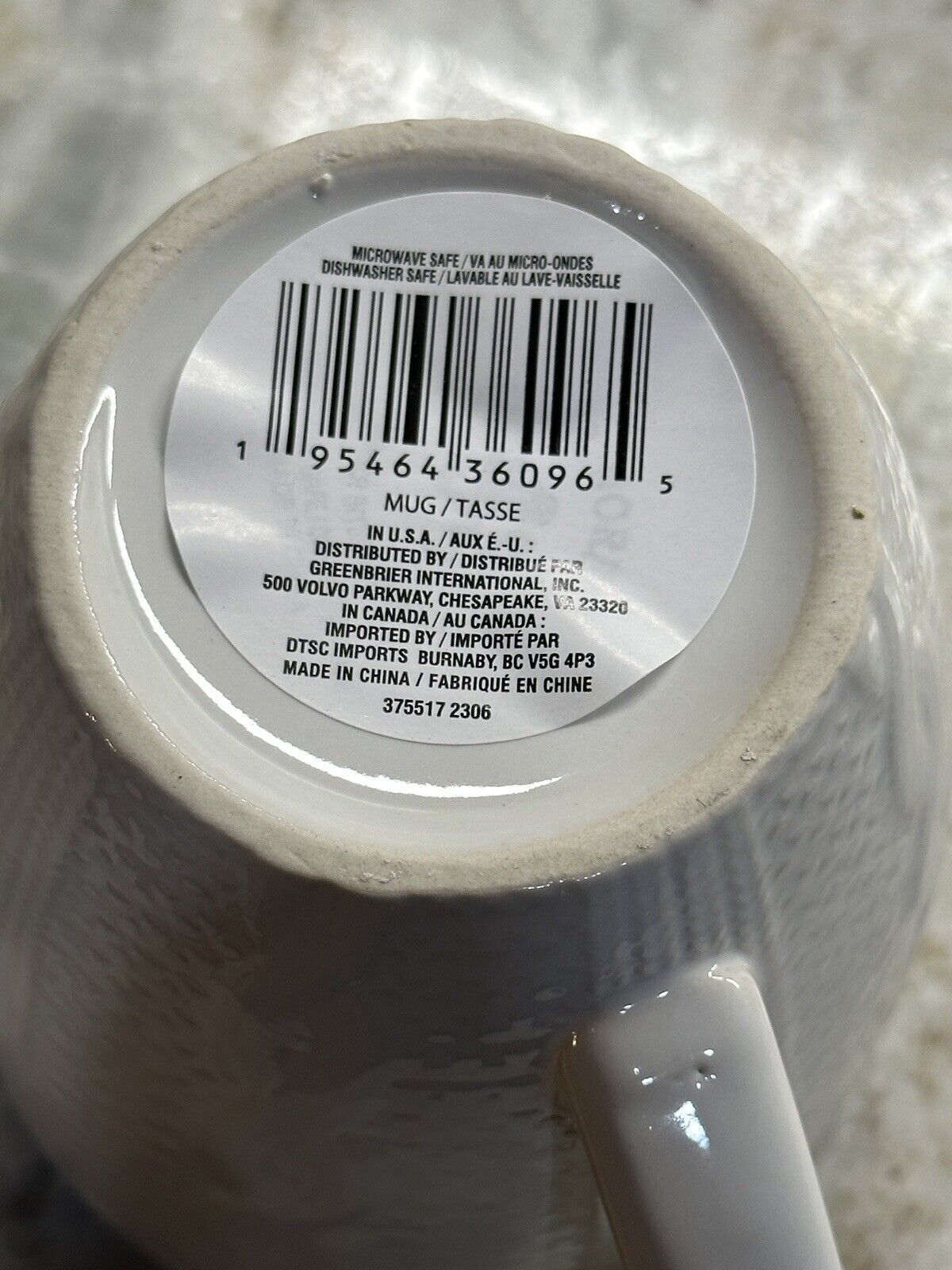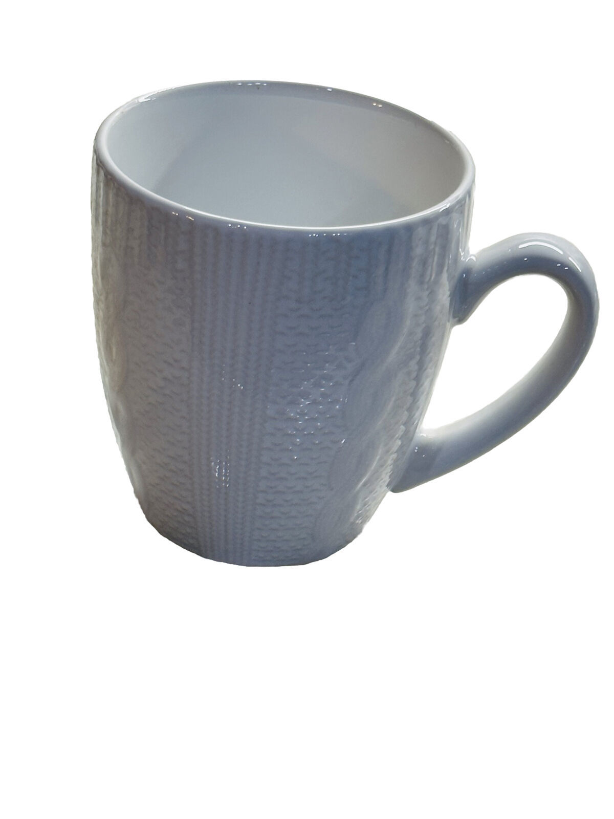 Enjoy your morning coffee in style with this festive set of 4 oversized coffee cups. The cups feature a white textured design, with an embossed sweater pattern, perfect for adding some holiday cheer to your kitchen. Each cup has a capacity of 14 ounces, making them perfect for your daily coffee fix or for serving hot cocoa during the winter months.