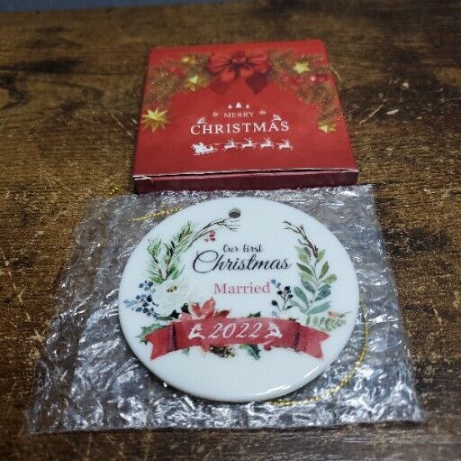 Celebrate your first Christmas as a married couple with this beautiful ornament. This piece is perfect for any newlyweds looking to add a special touch to their holiday decor. The design features a lovely wedding theme and is sure to become a treasured keepsake for years to come. The ornament is made for Christmas and can be placed on your tree, wreath, or any other festive display of your choice. The item is brand new, and has never been used before, making it a great addition to your collection. With the year 2022 engraved on it, this ornament will be a constant reminder of the special memories you have shared together.