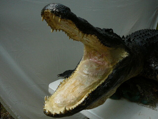 (internal #G402-4). GENUINE COMPLETE ALLIGATOR STUFFED TROPHY MOUNT - head, body, feet, prepared as described below. American Alligator (Alligator Mississippiensis).