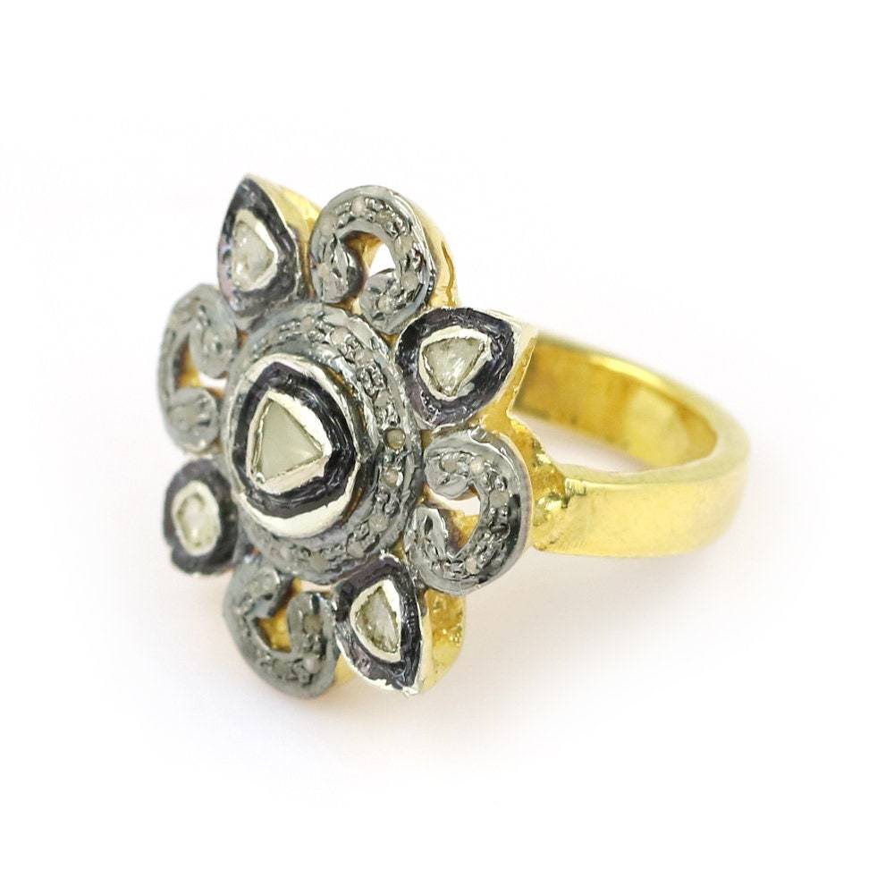 Antique Look , Single Cut Diamond Ring , Uncut Diamond Ring , Victorian Look , H