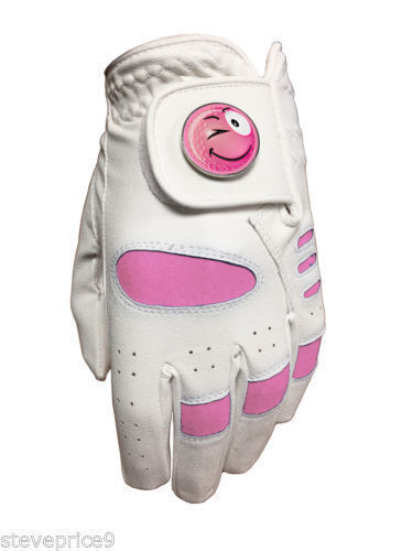 NEW LADIES ALL WEATHER GOLF GLOVE. SIZE MEDIUM. PINK BALL MARKER. WINK ETC