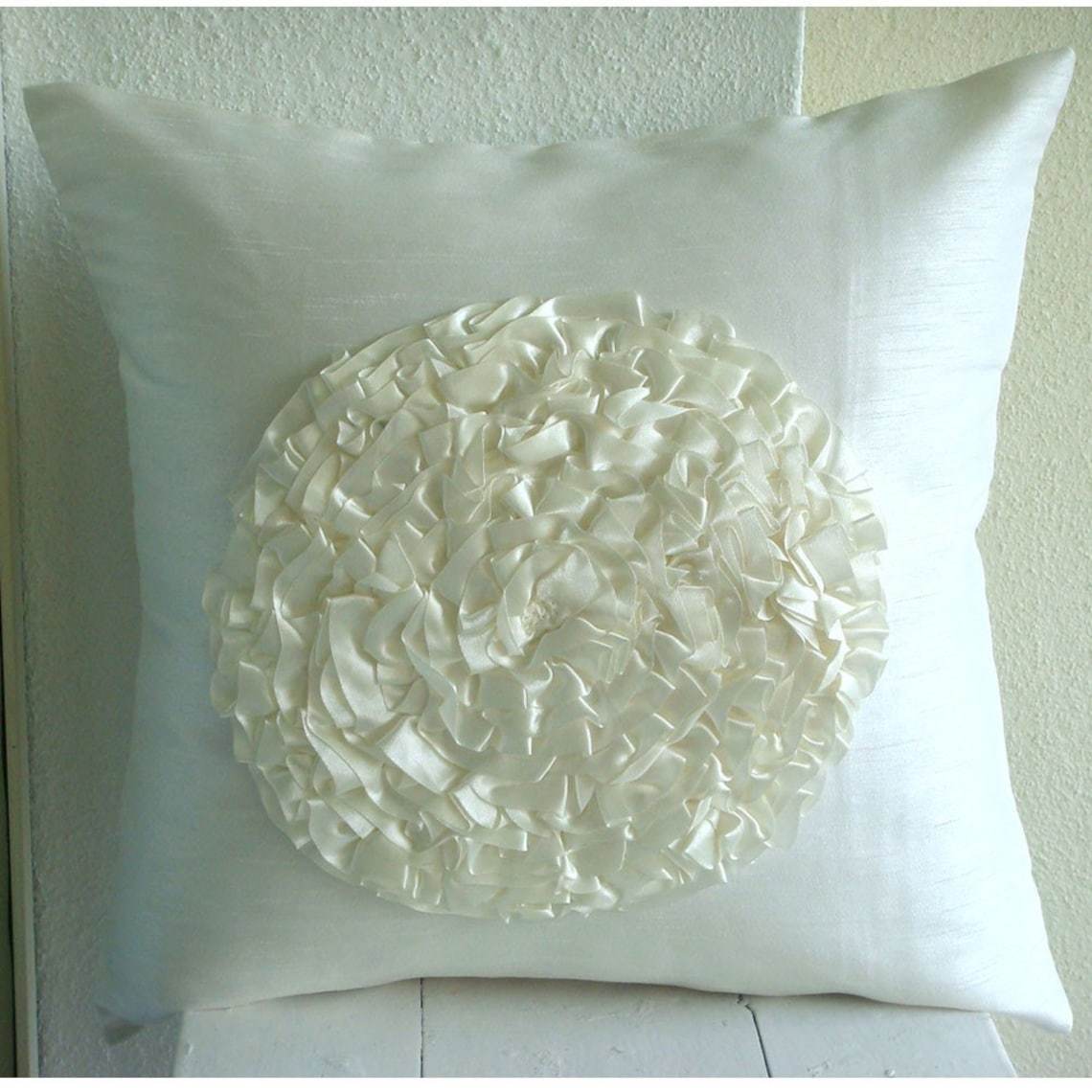 Ruffle Flower 16"x16" Art Silk Ivory Decorative Pillow Cover, Vintageous