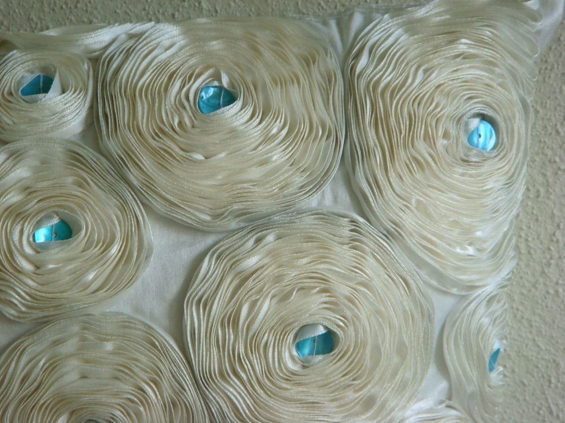 Ribbon Ivory Rose Flower 16x16 Art Silk Ivory Throw Pillow Covers, Ivory Roses